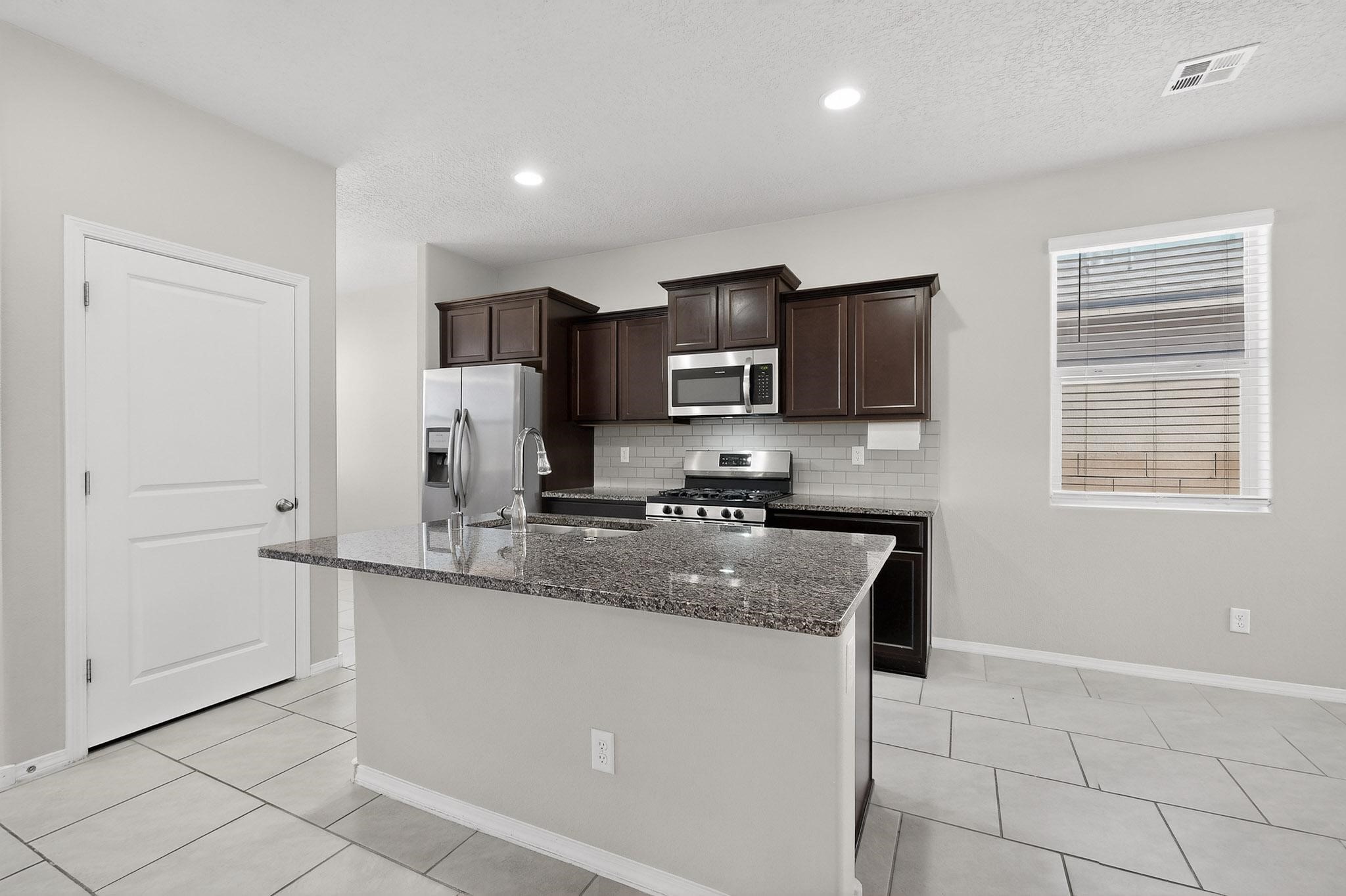 Opportunity is knocking with this 3 bedroom, 2 bathroom single level detached home in the completely sold out Cielo Azul Subdivision. Located across the street from the community open space you will be just steps away from daily walks/strolls, bike rides or walking your 4 legged loved one. Upon entry, the open concept kitchen and living area offer the perfect space to gather. The kitchen is sleek with granite counters, stainless appliances and lots of natural light. Casual eating can be enjoyed at the kitchen island or marvel in the separate dining area with great views of the community park. Wonderful separation of bedrooms allows the primary suite privacy with views to the walled back yard. Move-in ready with a finished garage, tankless water heater, refrigerated A/C, Washer & Dryer and matching stainless appliances. The backyard awaits your landscaping ideas and the location is great with easy access to 599 for both Los Alamos and Albuquerque commuters.
