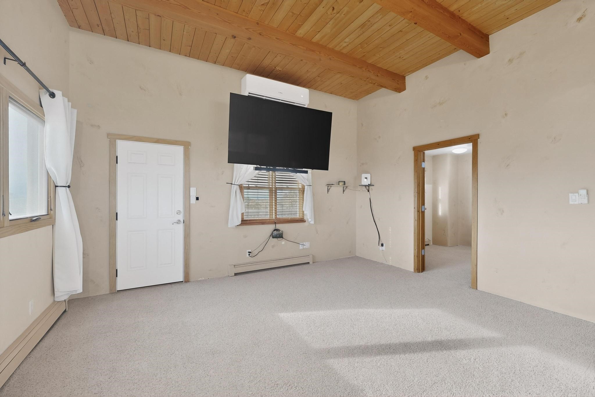 Move in Ready! Priced to Sell. Wonderful passive solar trilevel design nestled on a hilltop with decks and a lighted gazebo to enjoy the sweeping Sangre's and Pecos mountain views. A flexible floorpan with the owners suite, kitchen, dining and living areas on the main level. A TV / family room, and an office upstairs with a view deck. A walk out lower level includes 2 guest bedrooms, a full bath and laundry. The 36' x 29' heated garage also has a workshop and storage room. In 2023 the stucco and roof were replaced, 3 Bosch mini splits added, a new tankless hot water heater, plus new windows and storm doors, 2 trex/wood decks, rain downspouts and the kitchen appliances. In 2024 the well pump was replaced, and there is a 1500 gallon underground cistern. The underground 500 gallon propane tank is owned, the hot tub is ready with fabulous views. All this on 5 acres, No HOA, horses and chickens welcome, only minutes to Eldorado area local shopping and services, or into historic Santa Fe.