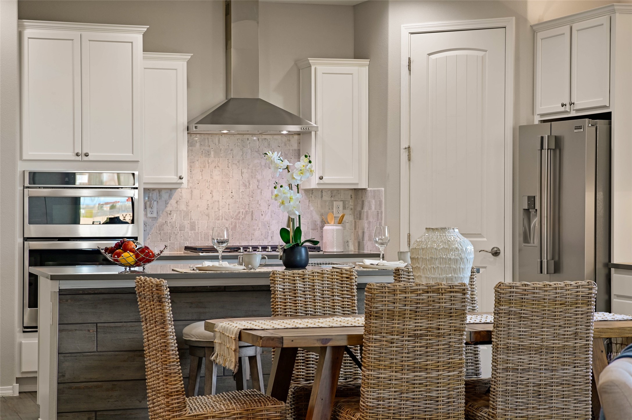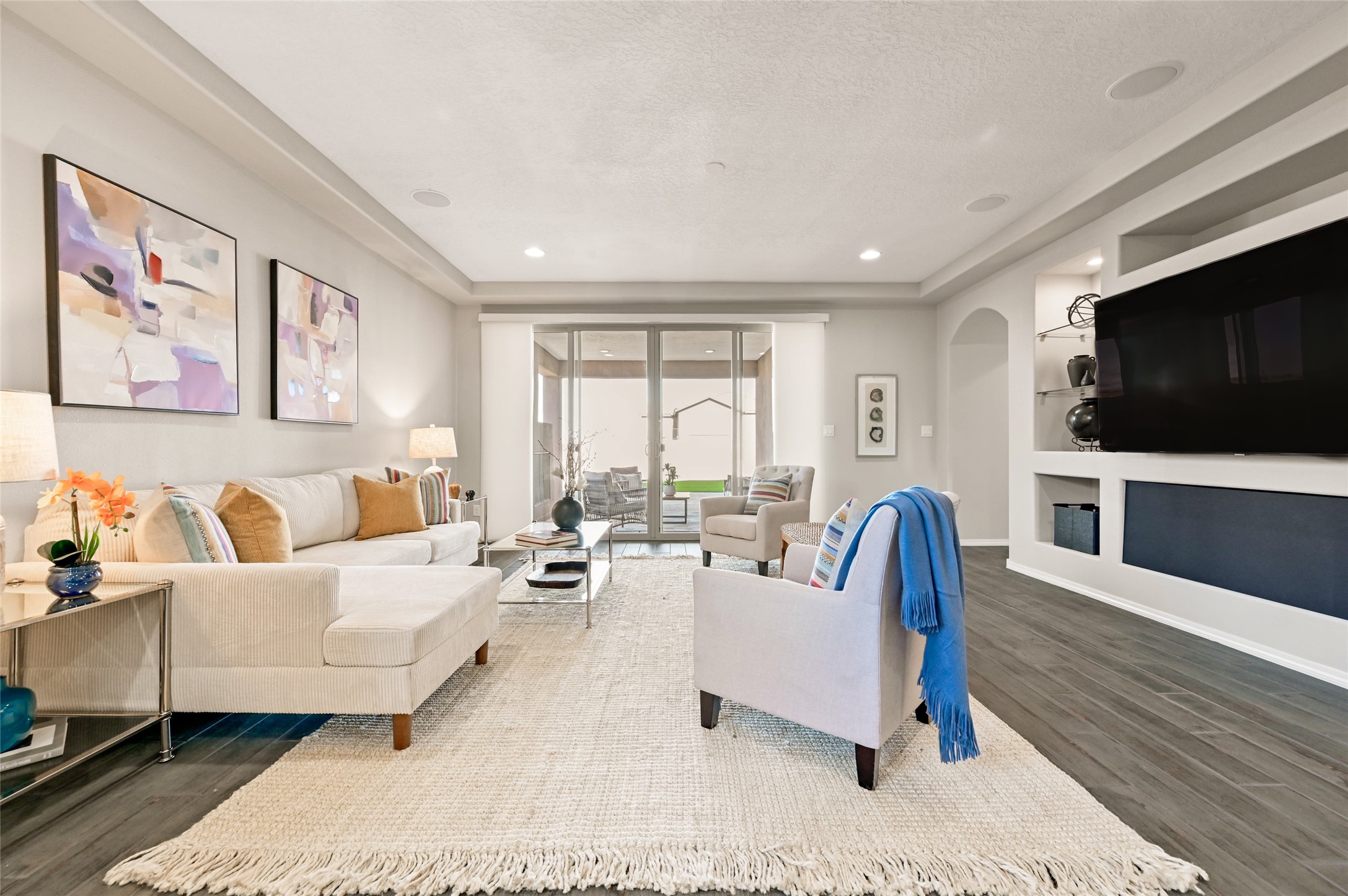 Built by Pulte in 2019, this beautifully maintained single-level 2,184 sq. ft. 3 bedroom/2 bathroom home is sited on a premium 0.20-acre lot, offering both privacy and captivating sunset views. Thoughtfully designed for comfortable living, the open-concept floor plan creates seamless flow between the kitchen, living, and dining areas. An elegant archway defines the living/kitchen/dining areas while framing a view of Santa Fe's expansive skies from the kitchen--a touch that brings both beauty and warmth to everyday living. The kitchen is a true standout, featuring extensive quartz counter space, abundant cabinetry, and stainless steel appliances. At its heart is a generous island with a sink and seating for four, perfect for a social gathering and sunset viewing. The generous primary suite has a large walk-in shower, double vanities and a substantial walk-in closet. The primary suite also has views of the private back yard. The large back portal has a beautiful gas fireplace and the back courtyard comes with green turf that never needs to be mowed! An attached 2-car garage and a mudroom/laundry room with a sink and a side-by-side washer and dryer complete this wonderful home. This beautiful home is newer in age and timeless. The premium lot and views definitely make it a stand out!