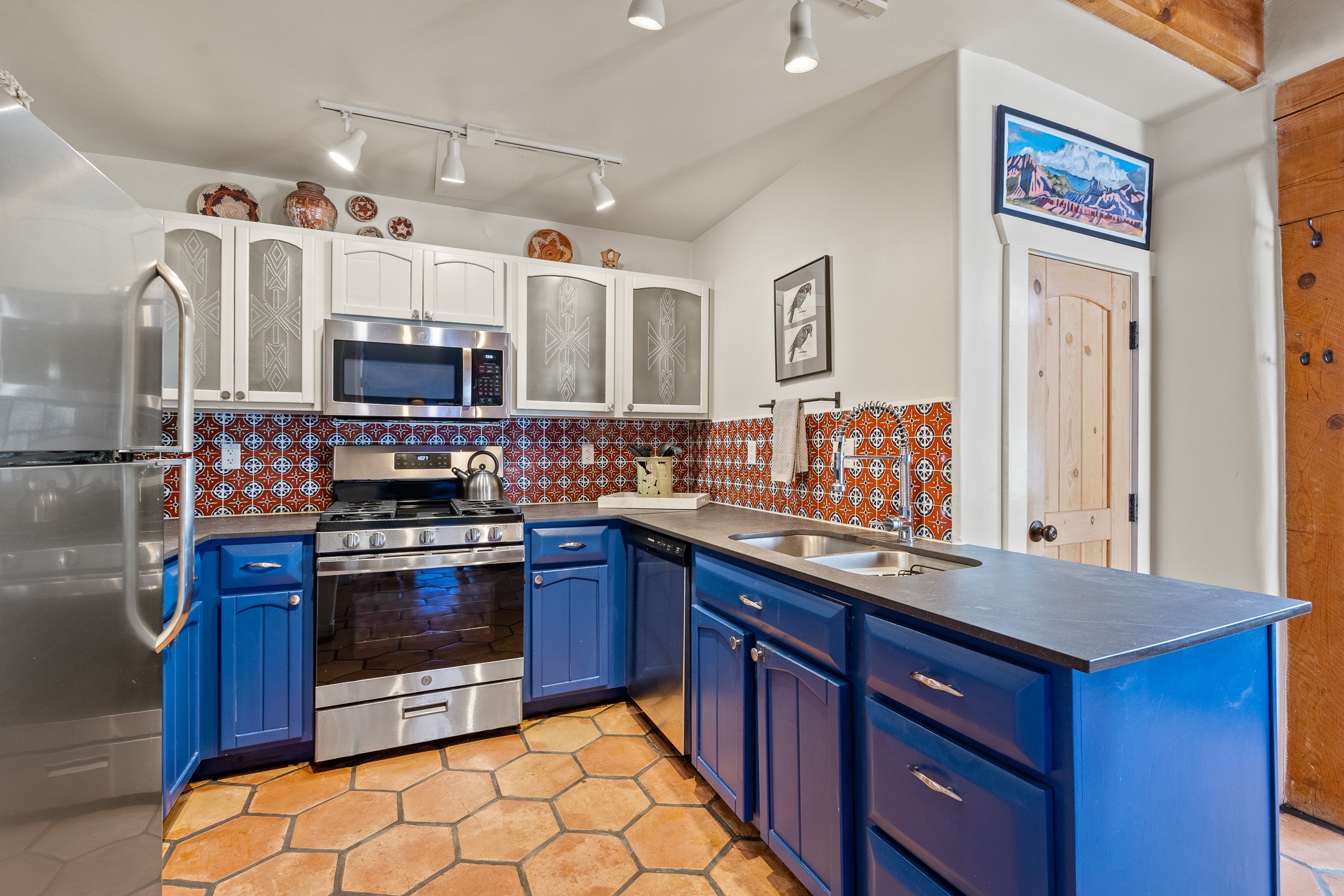 Tucked within the desirable Las Brisas community, 624 Galisteo Street, Unit 27 offers an exceptional opportunity to own a true lock-and-leave residence in the heart of Santa Fe. Just a short walk from the historic Santa Fe Plaza, this thoughtfully designed condominium places world-class dining, galleries, shopping, and cultural landmarks right at your doorstep, making it equally well suited as a primary residence, second home, or rental investment.The home blends classic Santa Fe character with comfortable functionality. Downstairs, the inviting living area is anchored by a cozy kiva fireplace--perfect for cool evenings and relaxed gatherings. The layout provides a natural flow between living, dining, and kitchen spaces, creating an atmosphere that feels warm and welcoming yet easy to maintain.Outdoor living is a highlight, with a private front courtyard ideal for morning coffee or evening dining, as well as a deck off the primary bedroom that provides a peaceful retreat above it all.With its prime walkable location, low-maintenance lifestyle, and strong rental appeal, this Las Brisas condominium captures the essence of Santa Fe living--charming, convenient, and endlessly enjoyable.