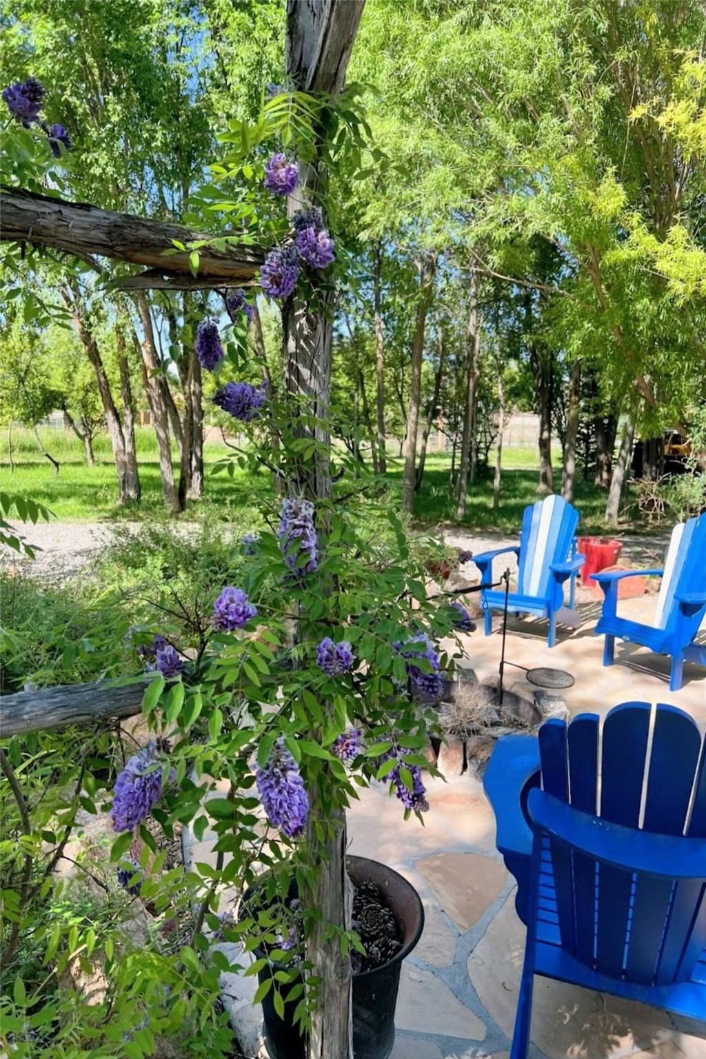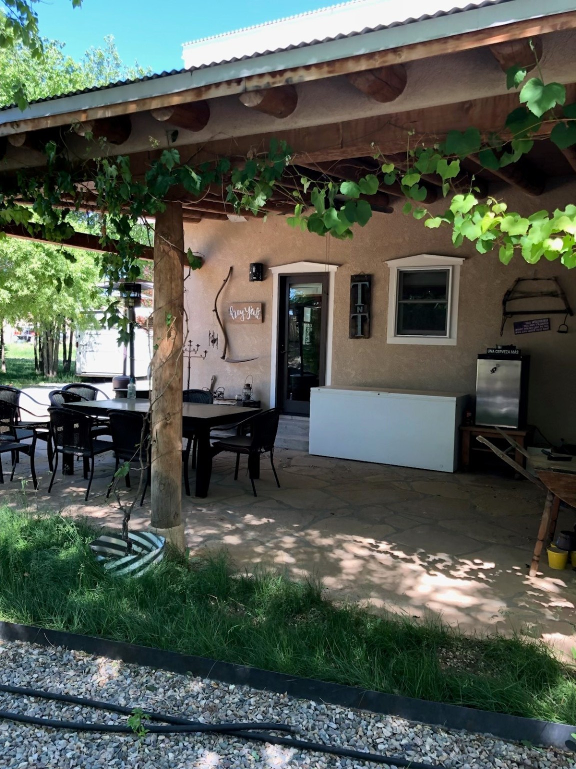 Rare Nambe horse property with water rights, mountain views and outbuildings. Situated on 1.389 irrigated & fenced acres, this 3 bedroom, 2 bath custom northern NM style home offers 2196 sq ft with vaulted pine ceilings, exposed vigas, solid ash hardwood floors & a spacious loft. Open living area features high-efficiency Acucraft wood-burning fireplace insert. Kitchen includes granite countertops, island, custom cabinetry with pull-out shelving, wine storage & quality appliances. Primary suite offers walk-in closets & spa-style bath with soaking tub. Private guest suite includes separate exterior entrance and en-suite bath. Outdoor living features flagstone portals, 16x20 Trex deck, patio with fire pit, mature landscaping, fruit trees and a 12x20 greenhouse, a solar powered gate, RV trailer parking & horse trailer parking. Property includes deeded acequia water rights and a private well, fenced turnout, 30x35 three/four stall barn with tack room and hay storage, corral and 30x45 metal building with reinforced slab and electricity. This unique offering is set against beautiful views of Sacred Heart Church, Santa Fe Ski Basin and Santa Fe Baldy, just minutes from Pojoaque and an easy drive to Santa Fe and Los Alamos.