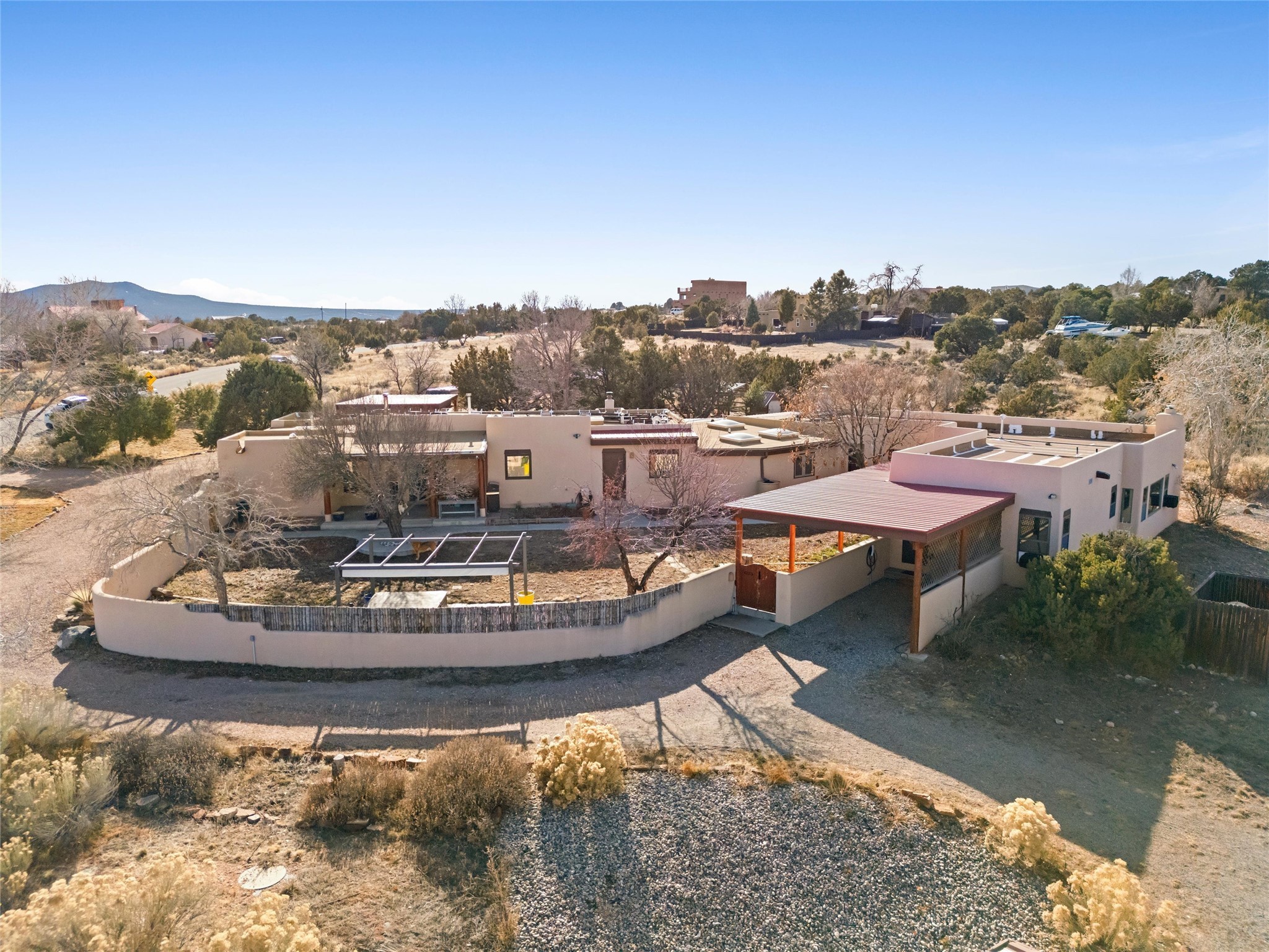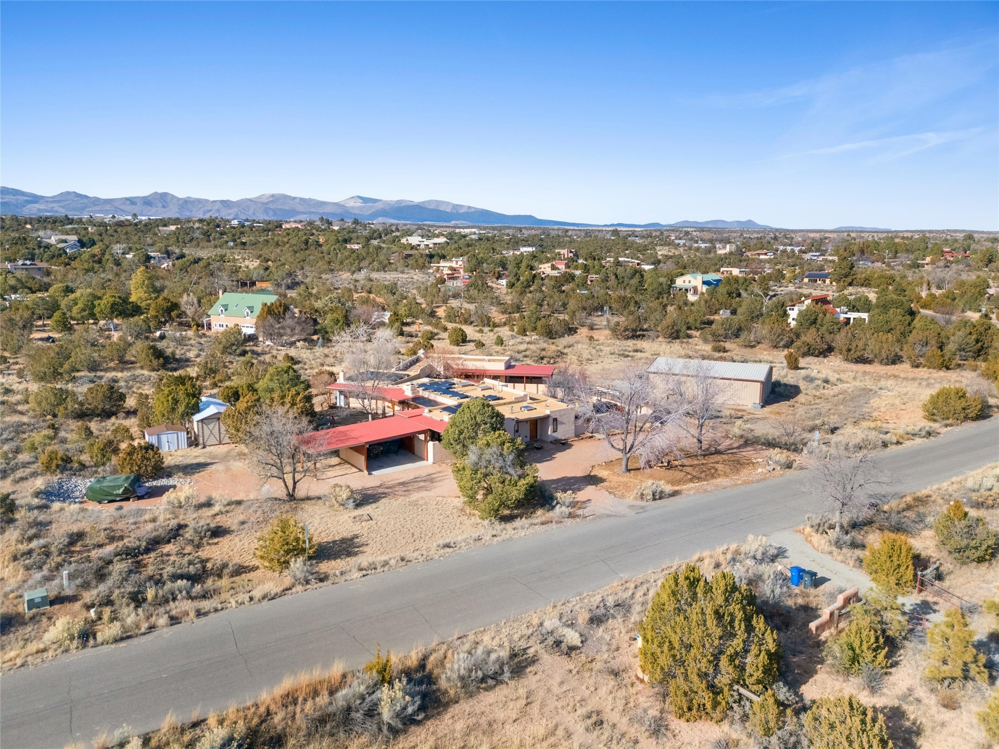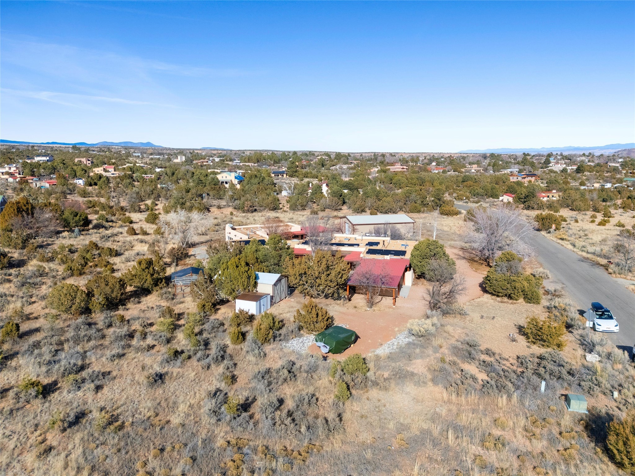 Rarely do you find a property that offers both expansive acreage and versatile living in the heart of White Rock. This extraordinary 2.2-acre La Senda estate features a spacious 4,260 sq. ft. footprint (total) including a main residence and a fully equipped guest house--perfect for a high-demand rental unit or a private multi-generational suite.The main home welcomes you with an updated chef's kitchen (2019) boasting quartz countertops, soft-close cabinetry, and modern appliances. Warm brick and wood-laminate flooring lead to a sun-drenched living area where a wood-burning stove creates a cozy mountain ambiance. Beyond the living space, a massive recreation room with its own fireplace and bath offers endless possibilities. For the hobbyist or professional, the crown jewel of the property is the 2,000 sq. ft. insulated shop with a roll-up door--large enough for a fleet of vehicles, a professional studio, or a world-class workshop. Complete with solar private carports for both dwellings, this is a rural sanctuary with modern efficiency.