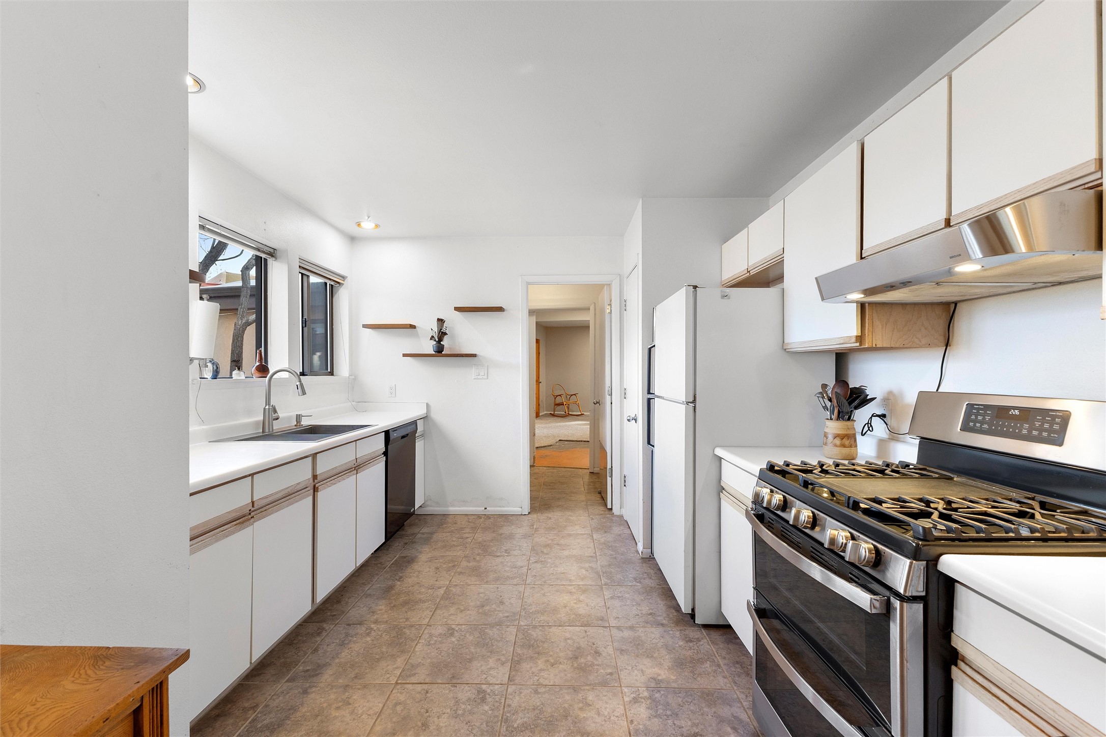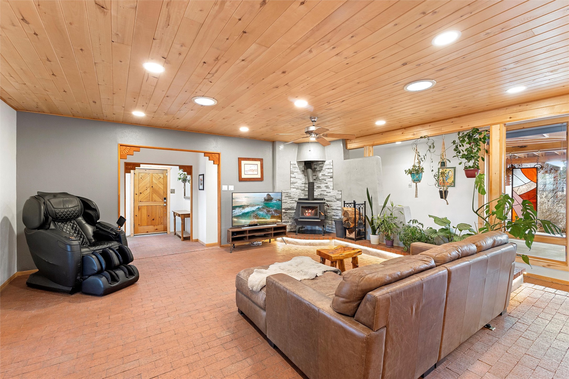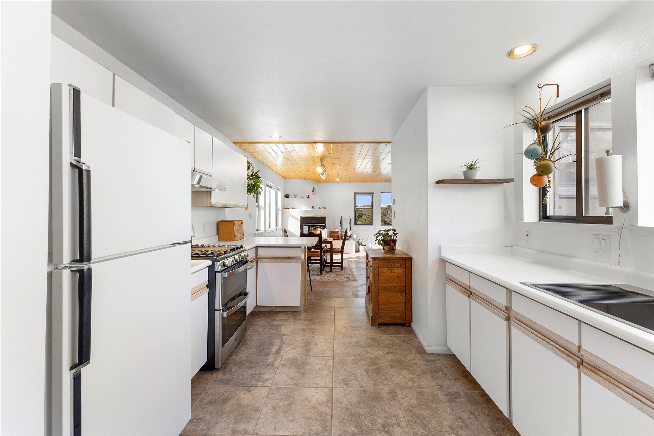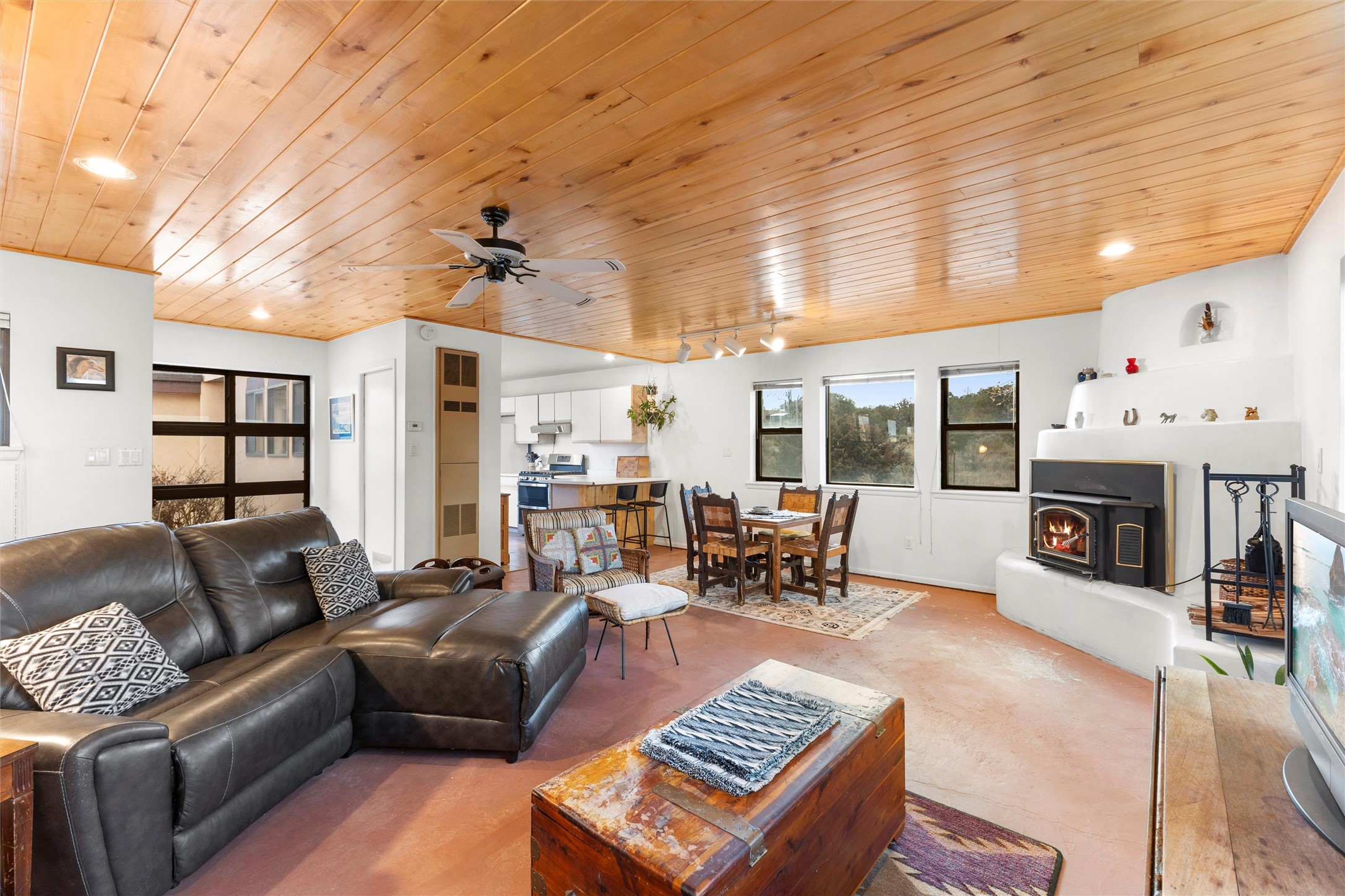 Rarely do you find a property that offers both expansive acreage and versatile living in the heart of White Rock. This extraordinary 2.2-acre La Senda estate features a spacious 4,260 sq. ft. footprint (total) including a main residence and a fully equipped guest house--perfect for a high-demand rental unit or a private multi-generational suite.The main home welcomes you with an updated chef's kitchen (2019) boasting quartz countertops, soft-close cabinetry, and modern appliances. Warm brick and wood-laminate flooring lead to a sun-drenched living area where a wood-burning stove creates a cozy mountain ambiance. Beyond the living space, a massive recreation room with its own fireplace and bath offers endless possibilities. For the hobbyist or professional, the crown jewel of the property is the 2,000 sq. ft. insulated shop with a roll-up door--large enough for a fleet of vehicles, a professional studio, or a world-class workshop. Complete with solar private carports for both dwellings, this is a rural sanctuary with modern efficiency.