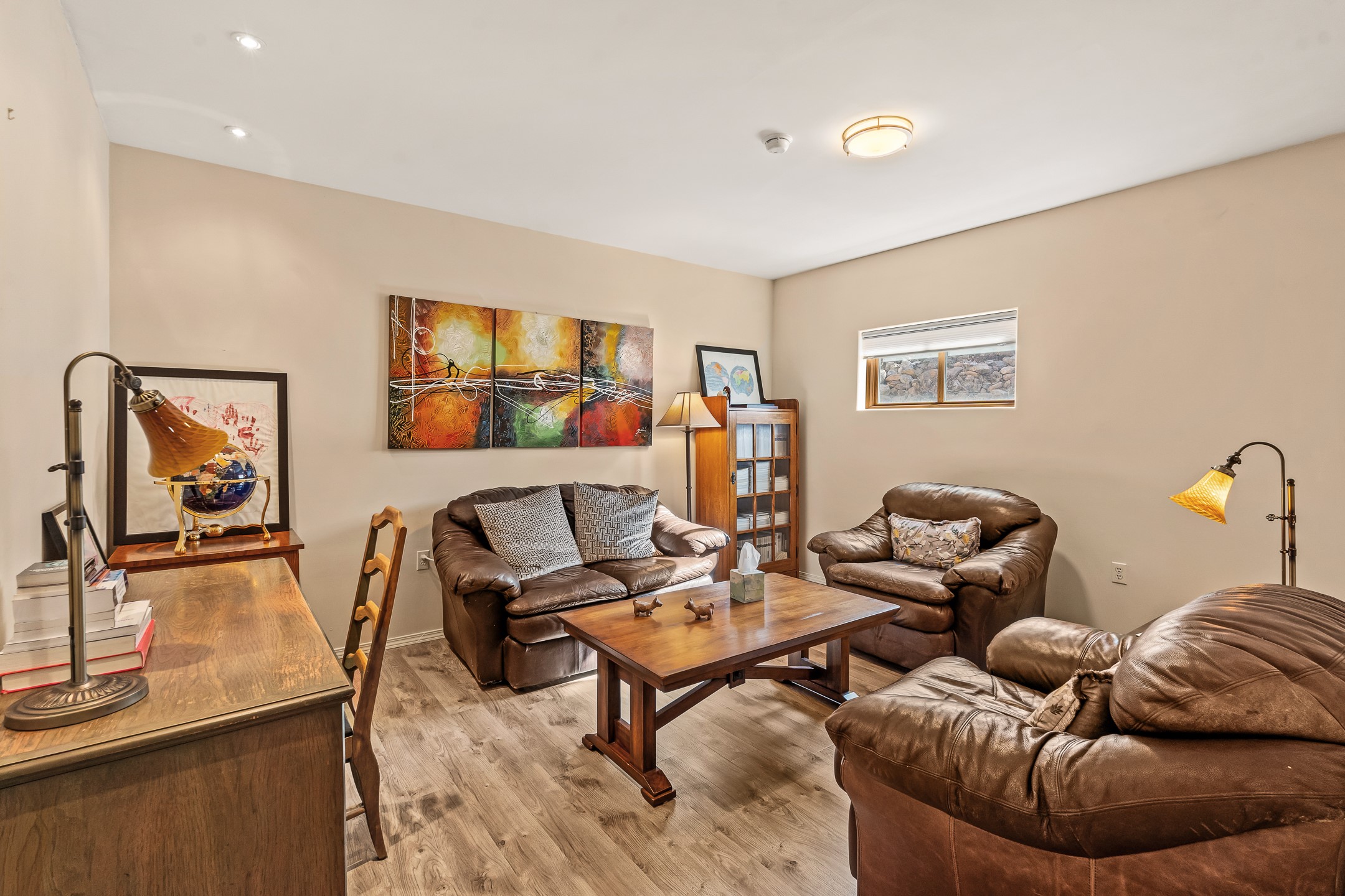 Discover a rare opportunity to own a professional office condo in one of Santa Fe's most convenient and high-traffic locations, along the Santa Fe River and just moments from the intersection of St. Francis Drive and West Alameda. This middle unit, in a three-unit complex, is filled with natural light from multiple windows, creating a bright, welcoming environment for clients and staff alike. The flexible floor plan easily accommodates four private offices plus a reception area, making it ideal for businesses such as medical, legal, therapy, healing arts, or general professional use. The space also includes a kitchenette, private bathroom, and charming covered brick walkways that enhance both curb appeal and accessibility. Parking is a major asset here, with 11 total spaces in the complex and three of which are designated for Unit B, one ADA space for shared use, and an additional shared space for all three units. Enjoy exceptional proximity to DeVargas Center and easy access to Santa Fe's main traffic corridors: St. Francis Drive, Cerrillos Road, Alameda, and Paseo de Peralta, ensuring strong visibility and convenience for clients coming from any direction.