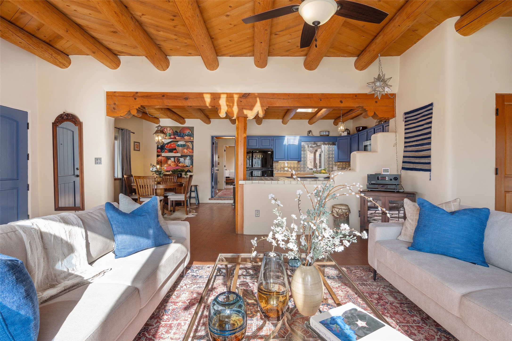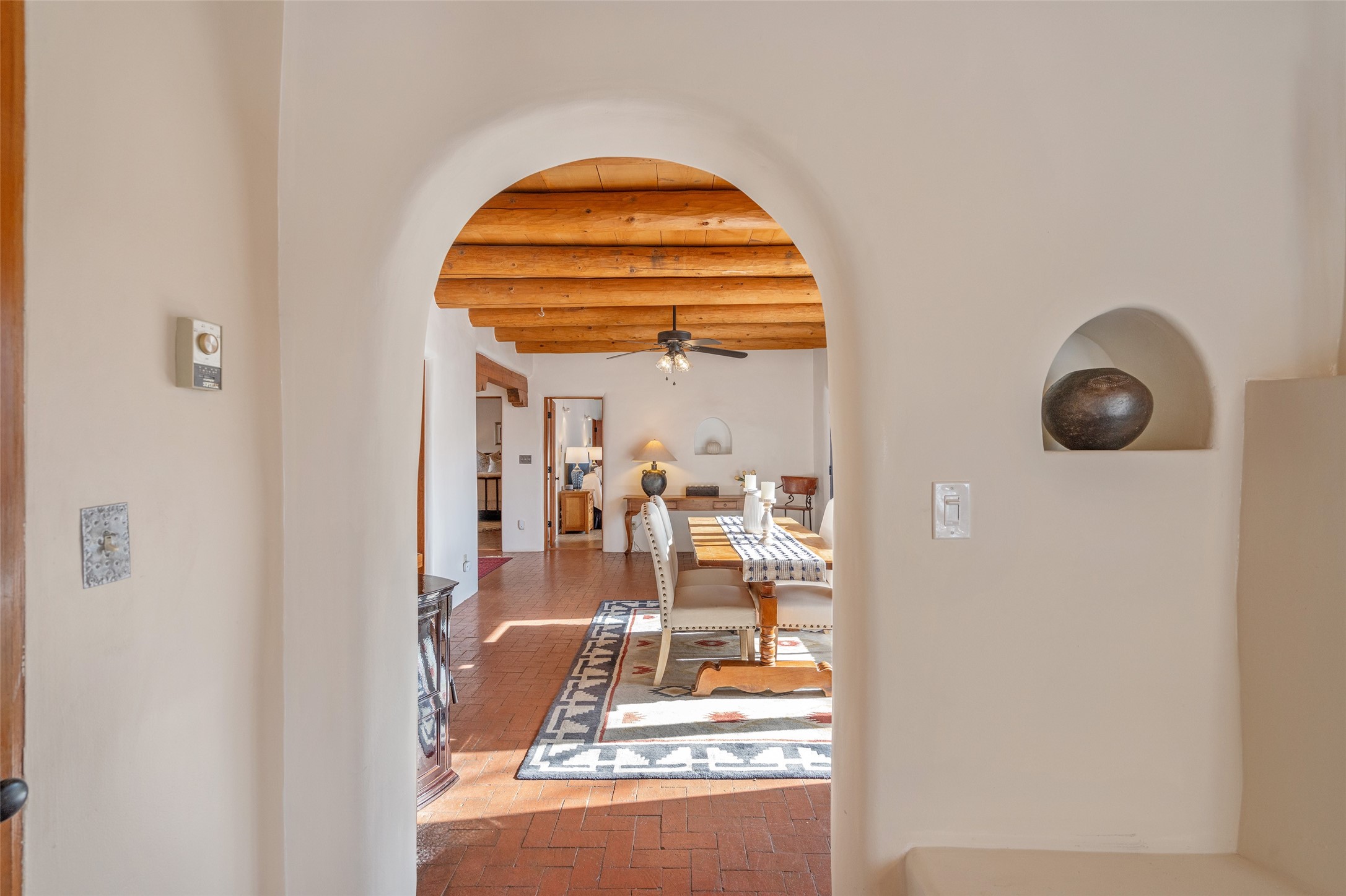 Nestled in the storied community of Chupadero, just outside Santa Fe, this remarkable 1.49-acre property offers an authentic New Mexico lifestyle steeped in history and natural beauty. Chupadero has been a vital agricultural corridor for centuries, with acequia irrigation systems dating back to the Spanish colonial era that continue to nourish the land today.This lovingly owner-built adobe home, crafted in the late 1980s, embodies timeless Southwestern architecture while offering modern comfort. The main residence features 3 bedrooms and 2.5 baths, complemented by flexible living space. Classic brick floors add warmth and character throughout, creating an inviting ambiance.The property's precious acequia water rights provide flood irrigation when available--a rare asset for the established orchard and fruit trees. Mature cottonwoods offer shade and seasonal beauty. A private well ensures year-round water security, and the brand-new septic system provides peace of mind.A charming 1-bedroom guest house offers privacy for visitors or potential rental income. The dedicated workshop with office space is perfect for artisans, hobbyists, or remote professionals. With a barn and corral there is ample room for horses or other livestock, this property is ideal for those seeking a spot for their miniature donkeys or sustainable homestead.Practical amenities include a 1-car garage and carport. The meticulous maintenance throughout reflects the owner's decades-long commitment to preserving this special sanctuary.This is more than a home--it's a connection to New Mexico's agricultural legacy and an opportunity to embrace a slower, more intentional way of life in one of Santa Fe's most historically significant communities.