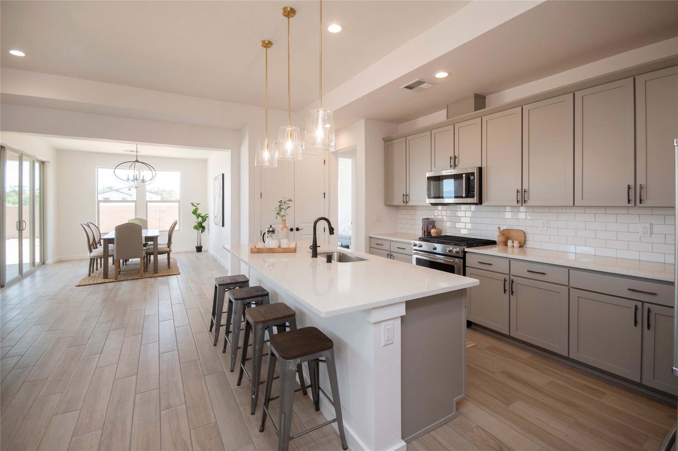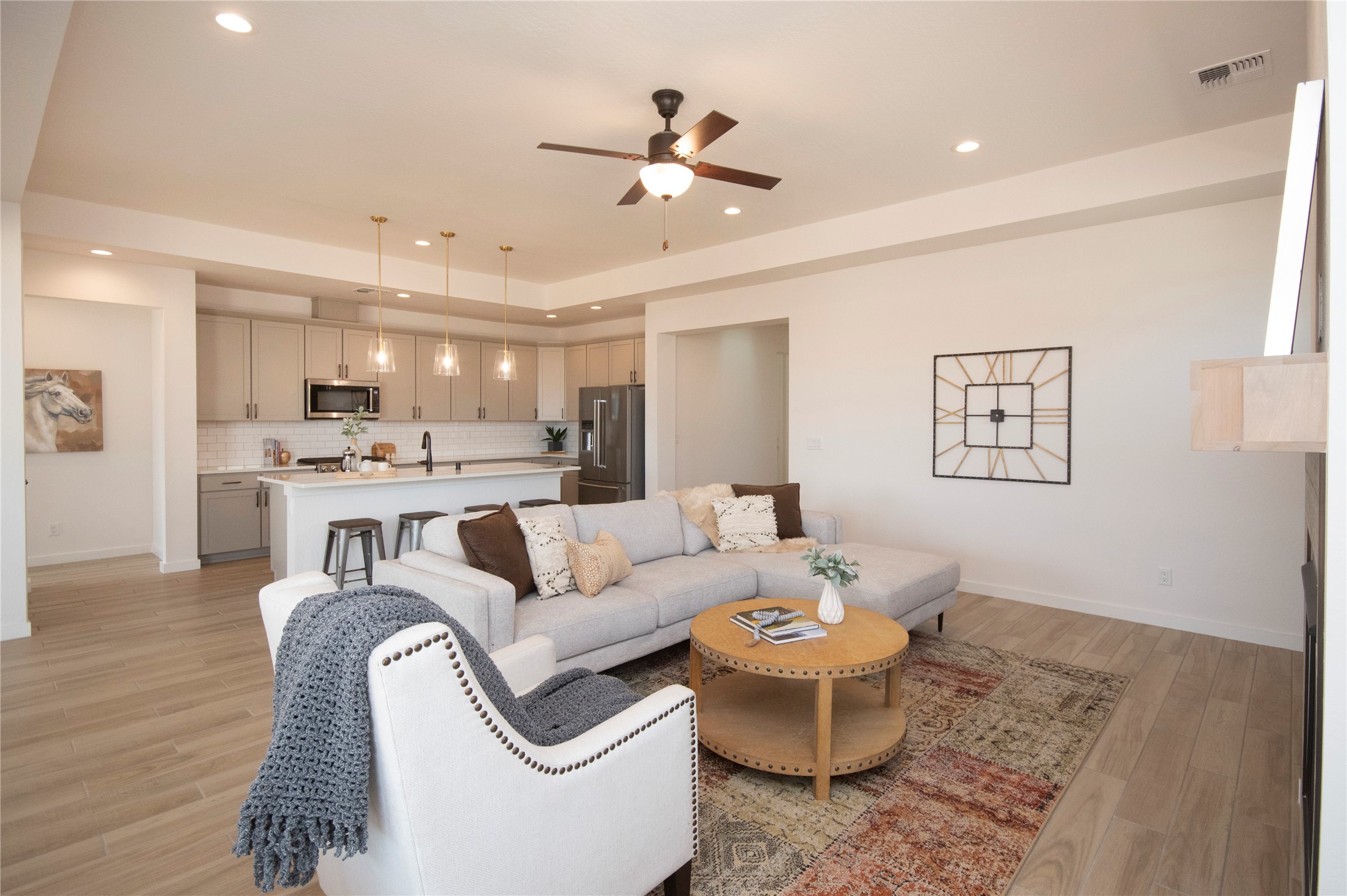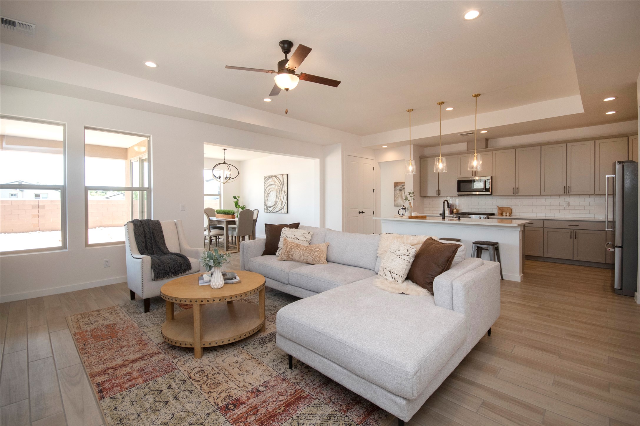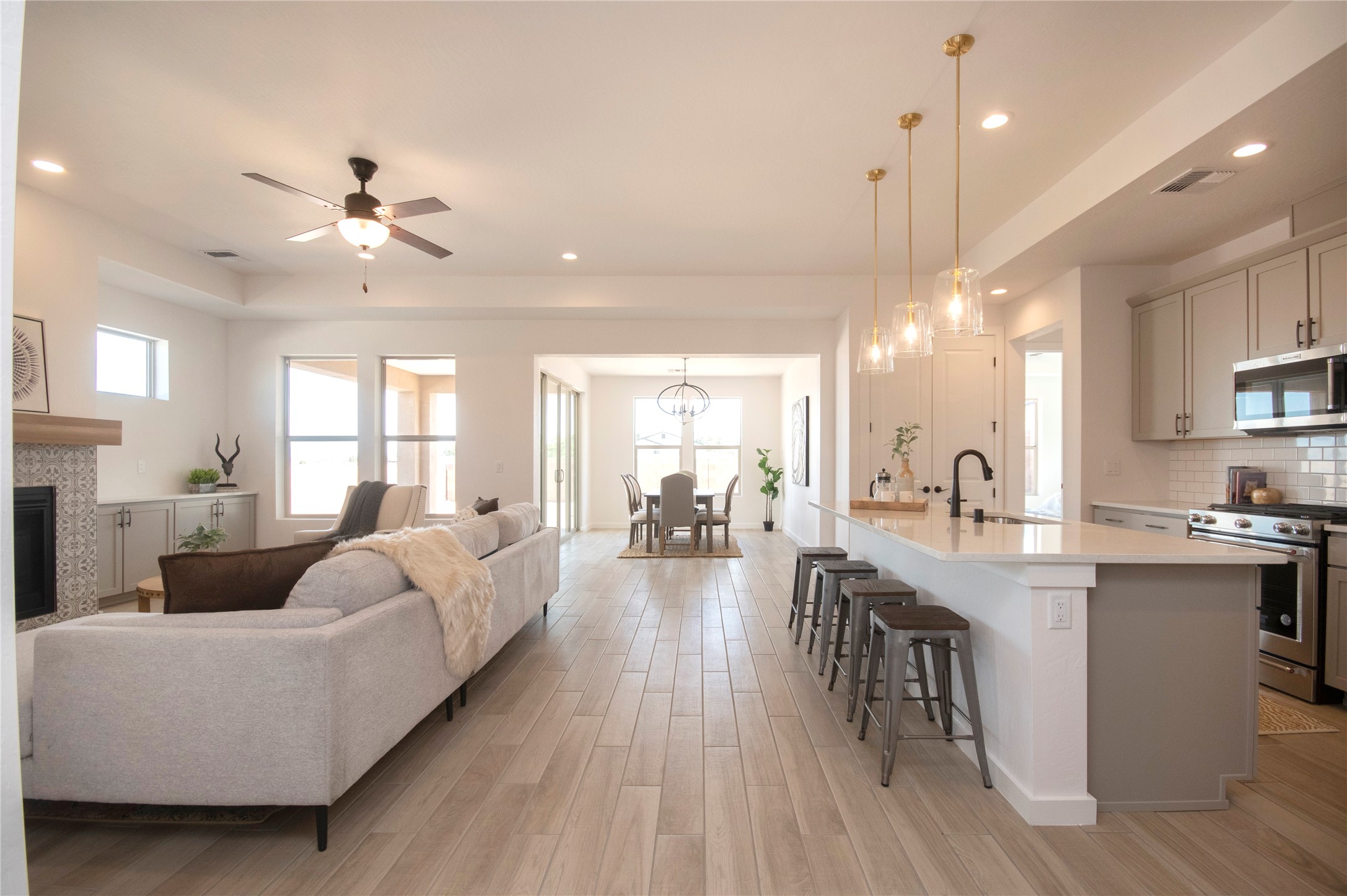 This thoughtfully planned one-story new construction offers a possible 4-bedroom layout with a bright, open-concept design ideal for modern living. The spacious floor plan seamlessly connects the kitchen, dining, and living areas, creating a welcoming space for everyday comfort. The home includes one full bathroom, one 3/4 bathroom, and a convenient powder room, Currently under 2 car garage and ample covered patio space. This home allows buyers the opportunity to envision the finished space while enjoying the confidence of brand-new construction backed by a builder warranty. Available to view by appointment--don't miss the chance to explore this exciting upcoming home. The photos are of a similar home of the same floor. Finishes are different. New photos will be taken upon completion.