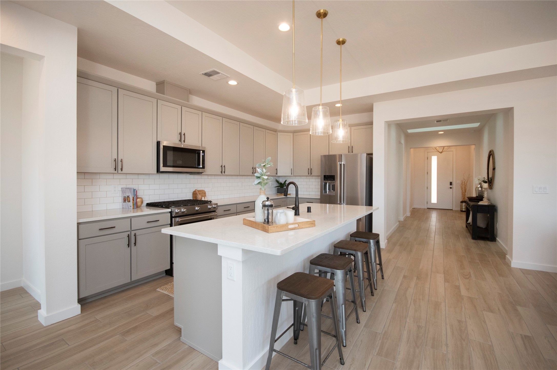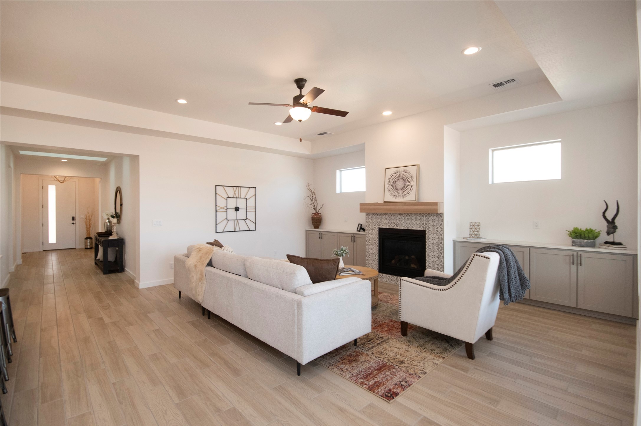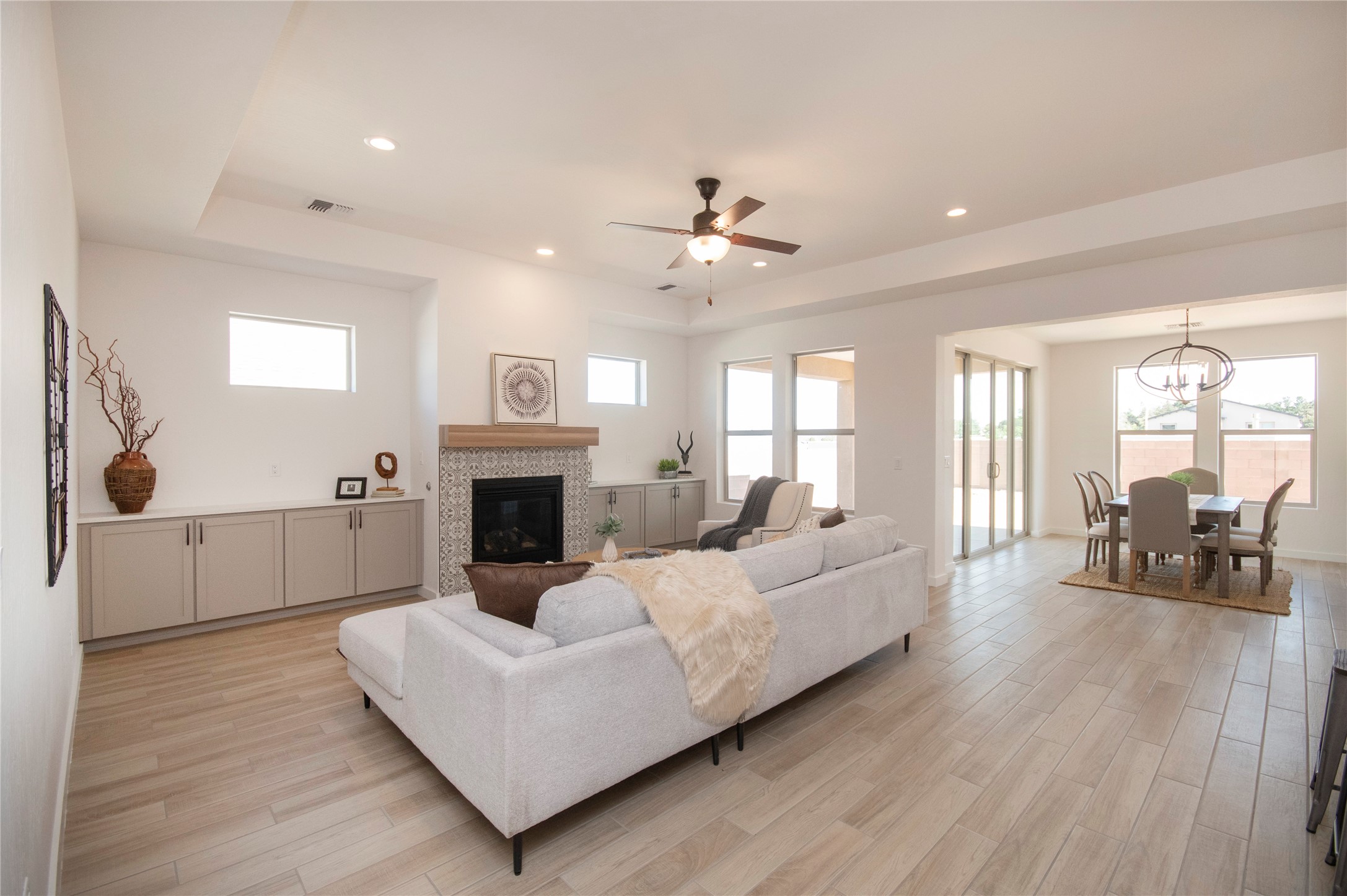 This thoughtfully planned one-story new construction offers a possible 4-bedroom layout with a bright, open-concept design ideal for modern living. The spacious floor plan seamlessly connects the kitchen, dining, and living areas, creating a welcoming space for everyday comfort. The home includes one full bathroom, one 3/4 bathroom, and a convenient powder room, Currently under 2 car garage and ample covered patio space. This home allows buyers the opportunity to envision the finished space while enjoying the confidence of brand-new construction backed by a builder warranty. Available to view by appointment--don't miss the chance to explore this exciting upcoming home. The photos are of a similar home of the same floor. Finishes are different. New photos will be taken upon completion.