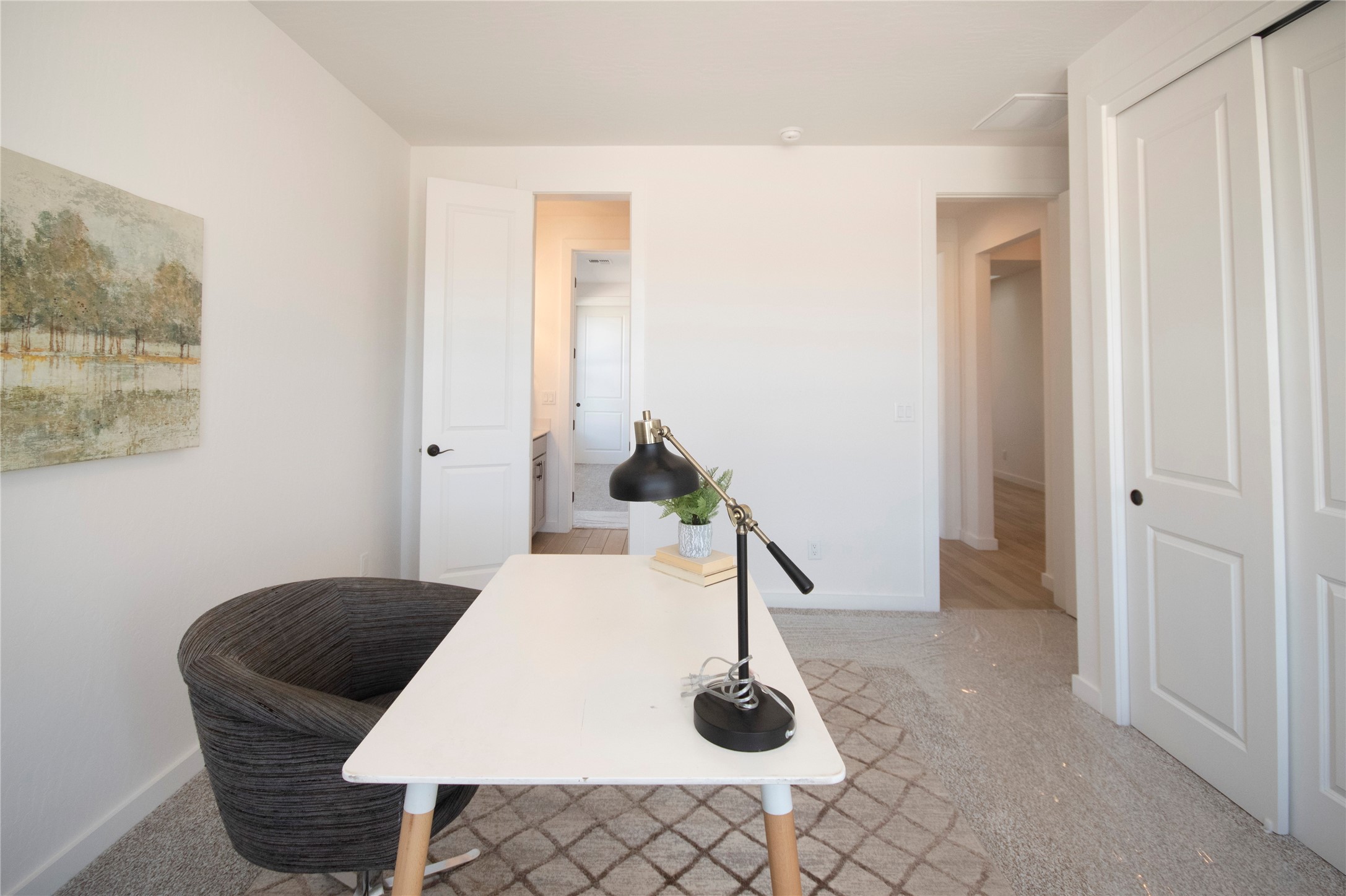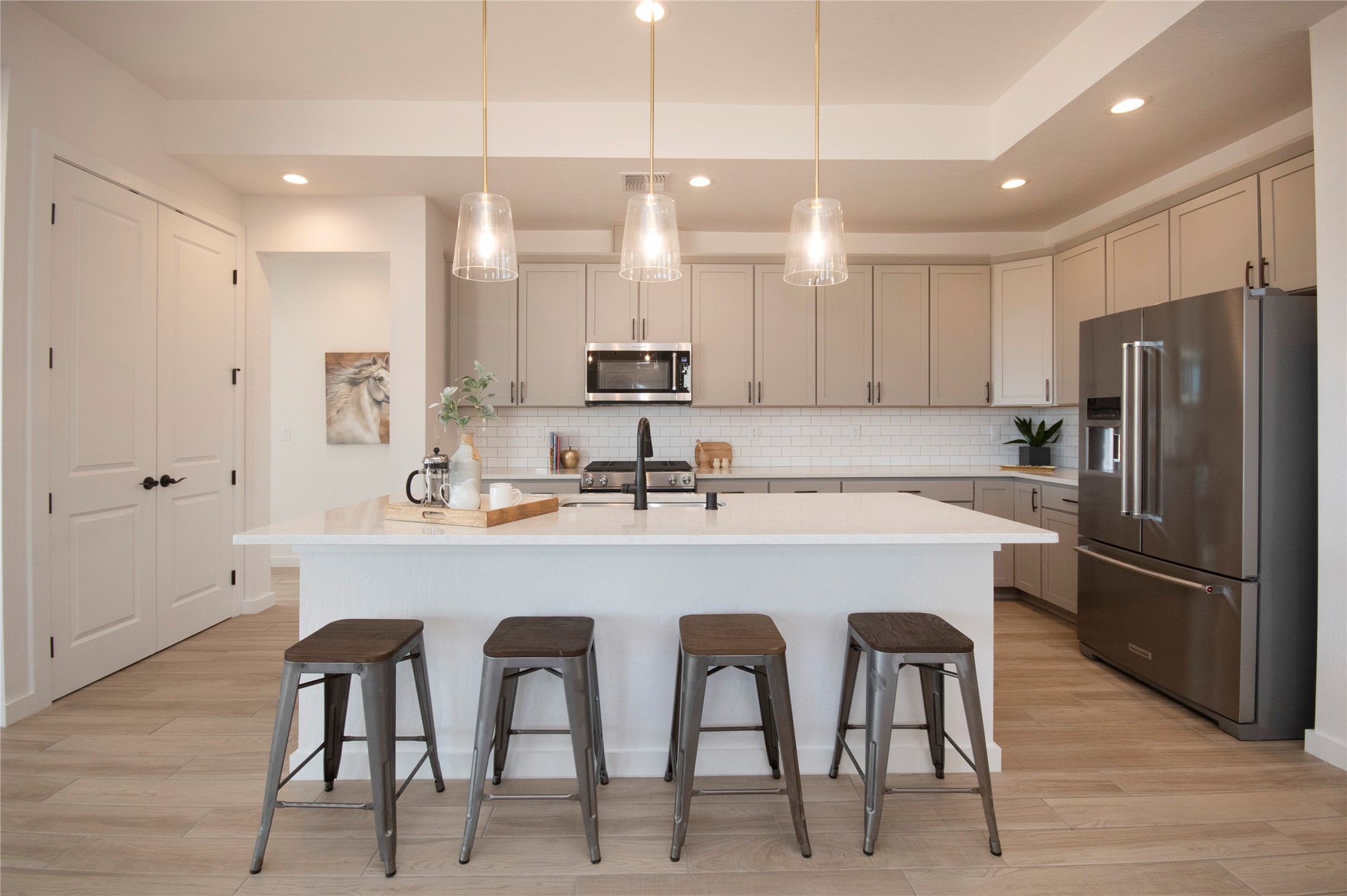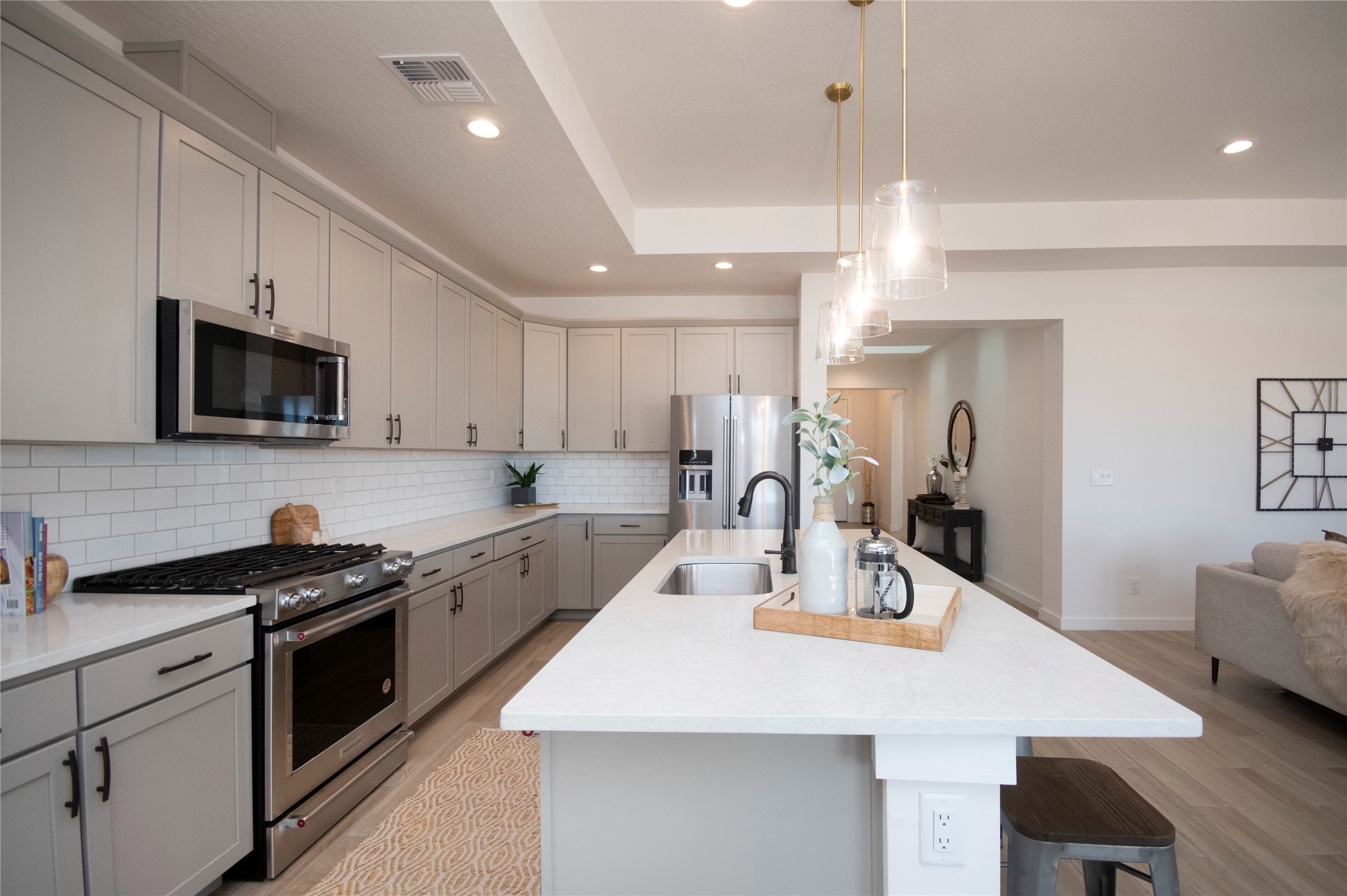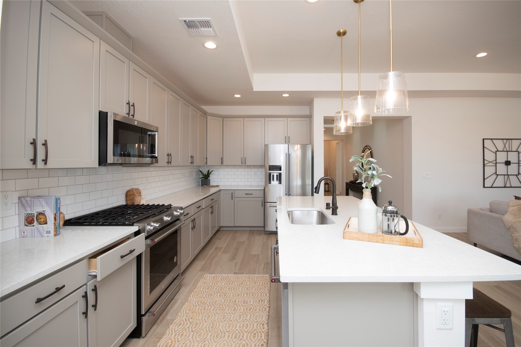 This thoughtfully planned one-story new construction offers a possible 4-bedroom layout with a bright, open-concept design ideal for modern living. The spacious floor plan seamlessly connects the kitchen, dining, and living areas, creating a welcoming space for everyday comfort. The home includes one full bathroom, one 3/4 bathroom, and a convenient powder room, Currently under 2 car garage and ample covered patio space. This home allows buyers the opportunity to envision the finished space while enjoying the confidence of brand-new construction backed by a builder warranty. Available to view by appointment--don't miss the chance to explore this exciting upcoming home. The photos are of a similar home of the same floor. Finishes are different. New photos will be taken upon completion.