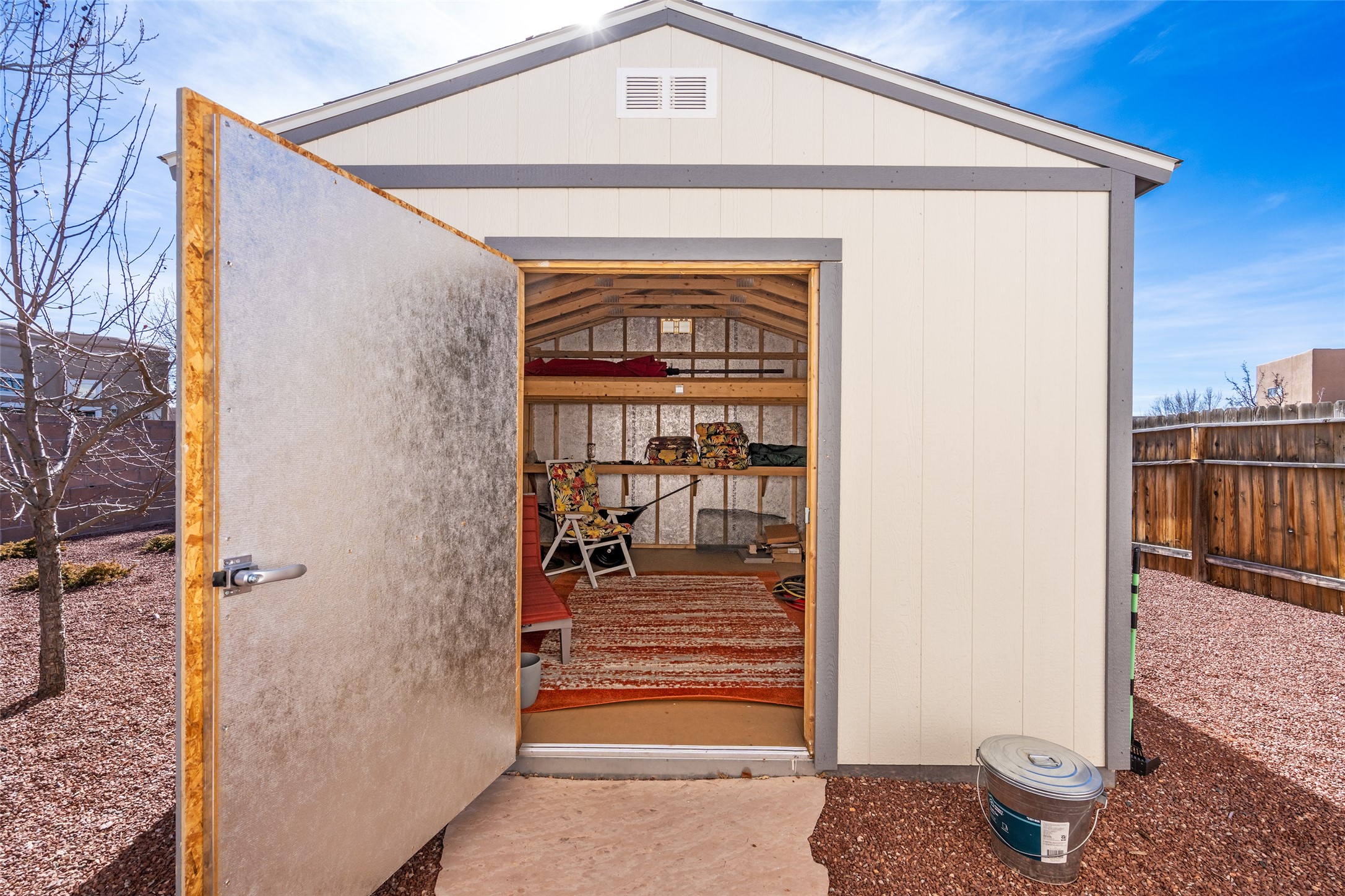 Located within the gated community of Vista Primera, this move-in-ready Santa Fe home offers comfort, efficiency, and thoughtful updates throughout. The property features owned solar, a recently maintained roof, tankless hot water heater, refrigerated central air, updated kitchen countertops and backsplash, on demand hot water in the kitchen, and professionally landscaped grounds with drip irrigation, providing ease of ownership and energy-conscious living. Inside, the home has three well-proportioned bedrooms and 2 bathrooms, with a functional layout designed for both everyday living and entertaining. This home creates a welcoming atmosphere, while clean finishes allow for immediate enjoyment.Outdoors, the landscaped yard with large shed and lit gazebo provides a peaceful setting for relaxing or gathering, enhanced by low-maintenance drip irrigation. Whether used as a full-time residence or a Santa Fe retreat, this home combines practicality, comfort, and value within a secure, well-maintained community. This is a wonderful opportunity to enjoy move-in-ready living in one of Santa Fe's desirable gated neighborhoods.