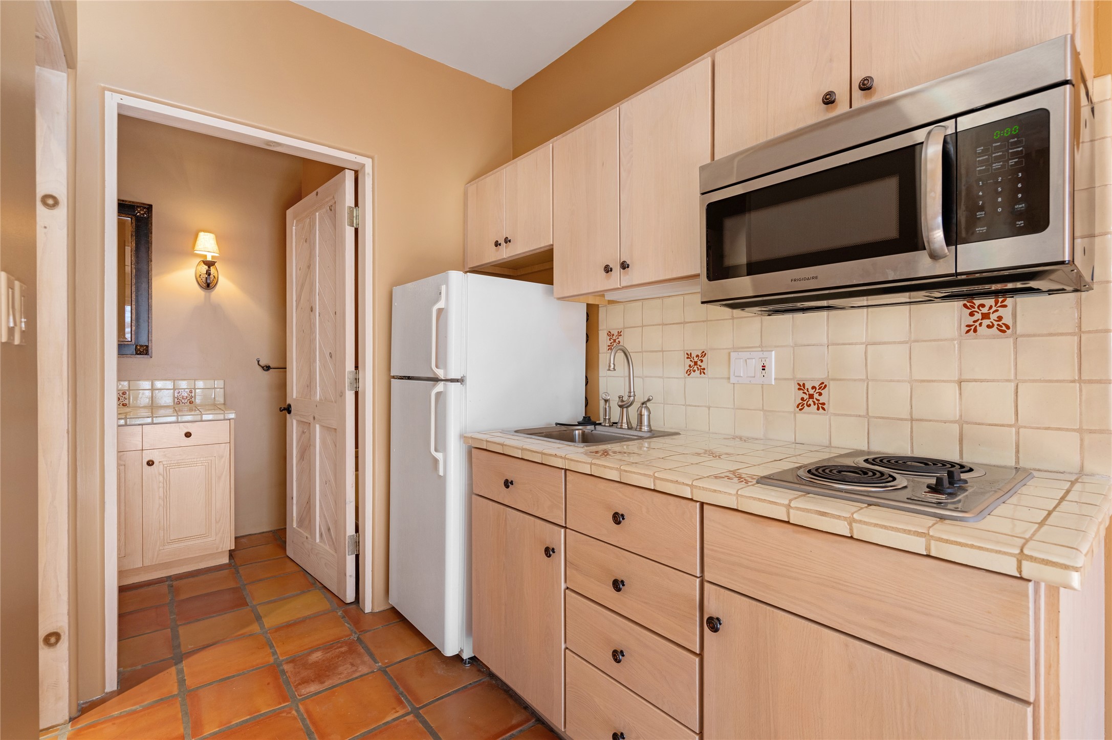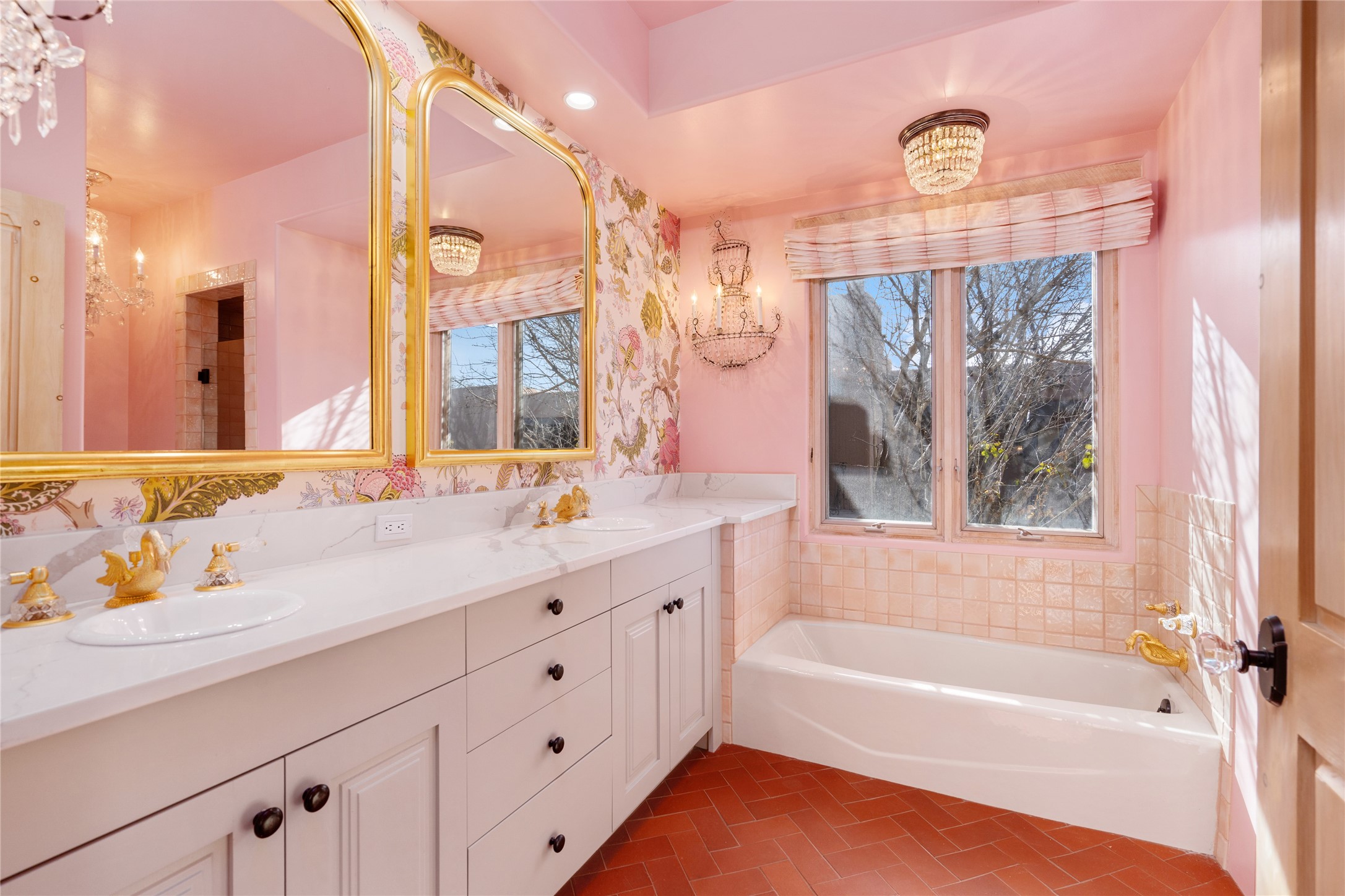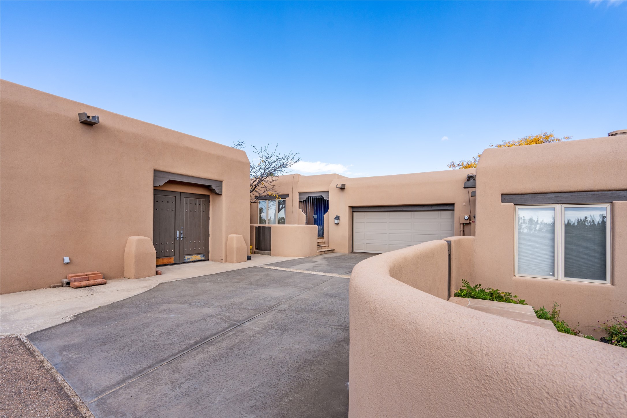 Expansive two bedroom home with guest house and studio. Exceptional views from your front porch and broad portal and large private back yard area perfect for entertaining. 230 square foot lap pool and hot tub for relaxing or entertaining. The main house has a grand foyer ready for art work with a back door showcasing the rear portal and back yard. The large kitchen has plenty of cabinet space, a butlers pantry, quartz counter tops, Wolf 5 burner stove, Cove Dishwasher, Subzero refrigerator, and a cozy banco/breakfast nook offset by a kiva fire place. Adjacent to the kitchen is a dining room that can easily seat 8 with nice views into the back courtyard and front yard. Down two steps past the office and large great room with fireplace to the massive main suite, full bathroom, soaking tub, two walk-in closets, sitting areas and easy access to the 8' hot tub. Guest house has a full kitchen and full bath. Detached studio ready for your endeavors. 2025 roof update with 5 year limited warranty on labor and materials. Must see this gem. Set up a showing today.