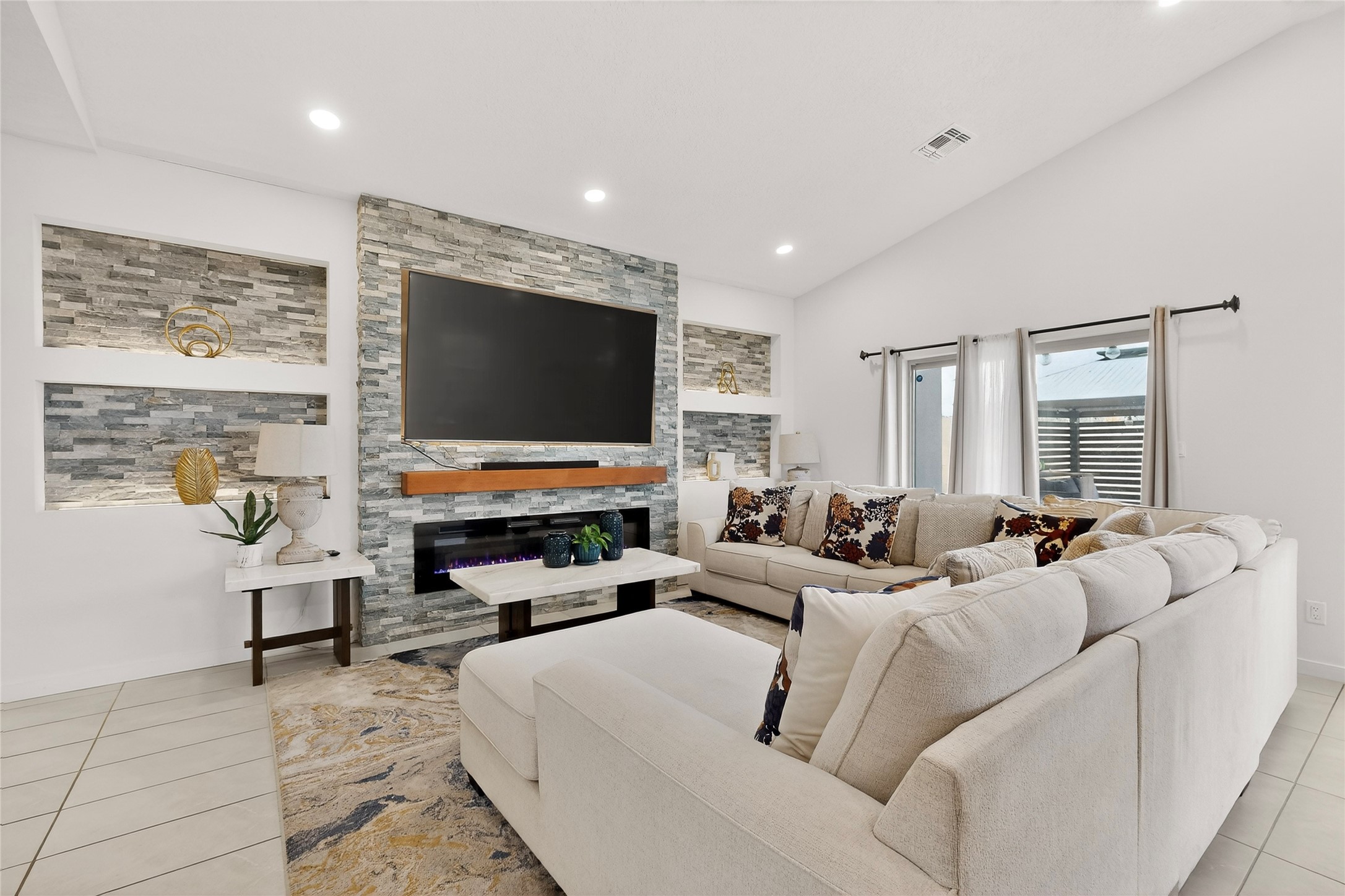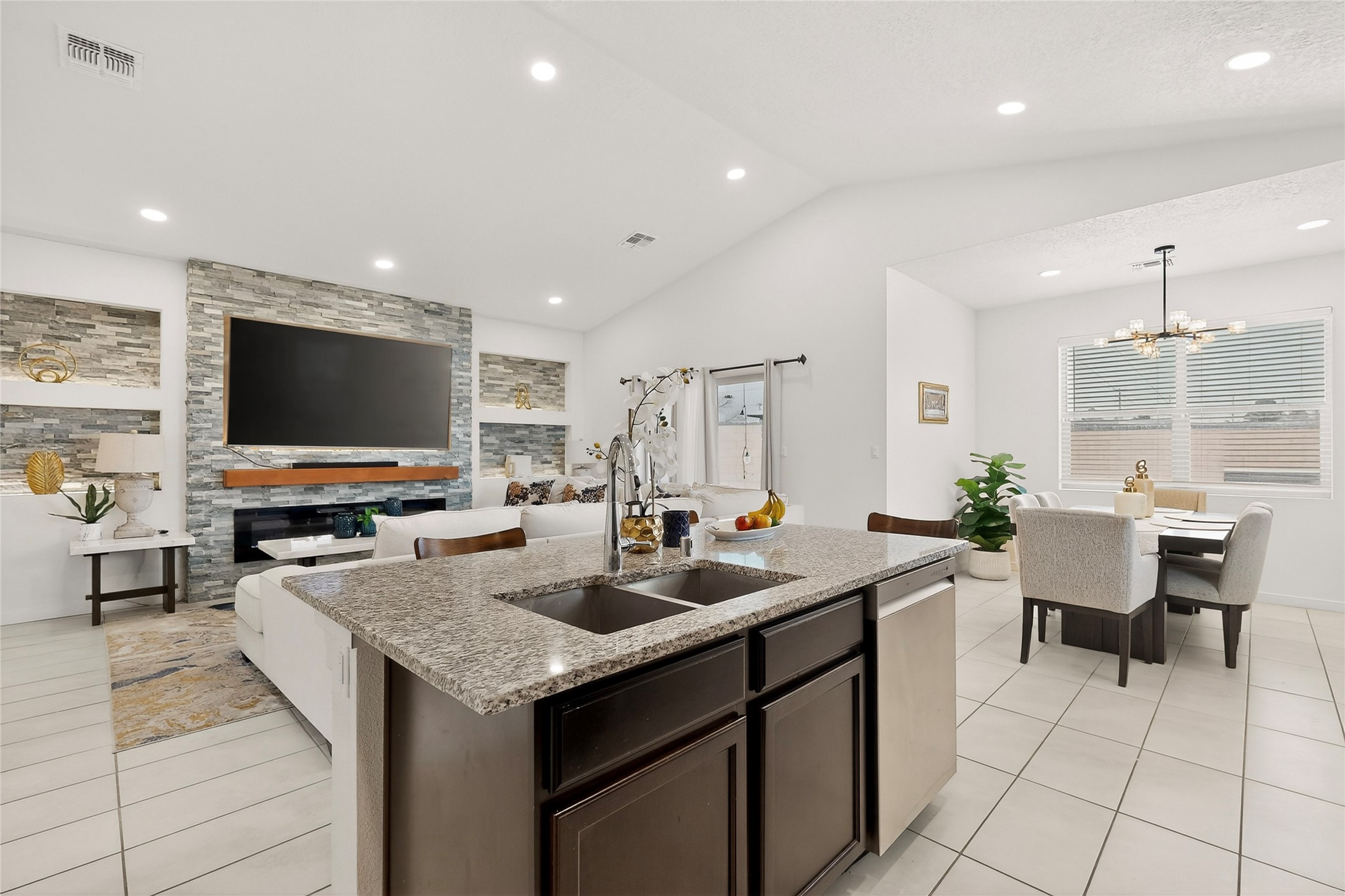 Almost-new, beautiful three-bedroom, two full-bath home featuring a gorgeous kitchen with an eye-catching backsplash and a spacious dining area perfect for gatherings. The primary suite offers a luxurious bathroom with both a soaking tub and a separate shower.This inviting home is tucked away on a cul-de-sac, making it an ideal family retreat. The living room showcases stunning stacked stone, ambient lighting, and a cozy fireplace, creating a warm and welcoming atmosphere. Enjoy a large laundry room and an open floor plan designed for modern living.Step outside to a concrete patio with gazebo and low-maintenance zero-scaped yard, perfect for relaxing or entertaining. Additional features include a tankless water heater and a finished garage.