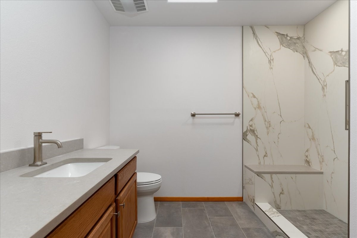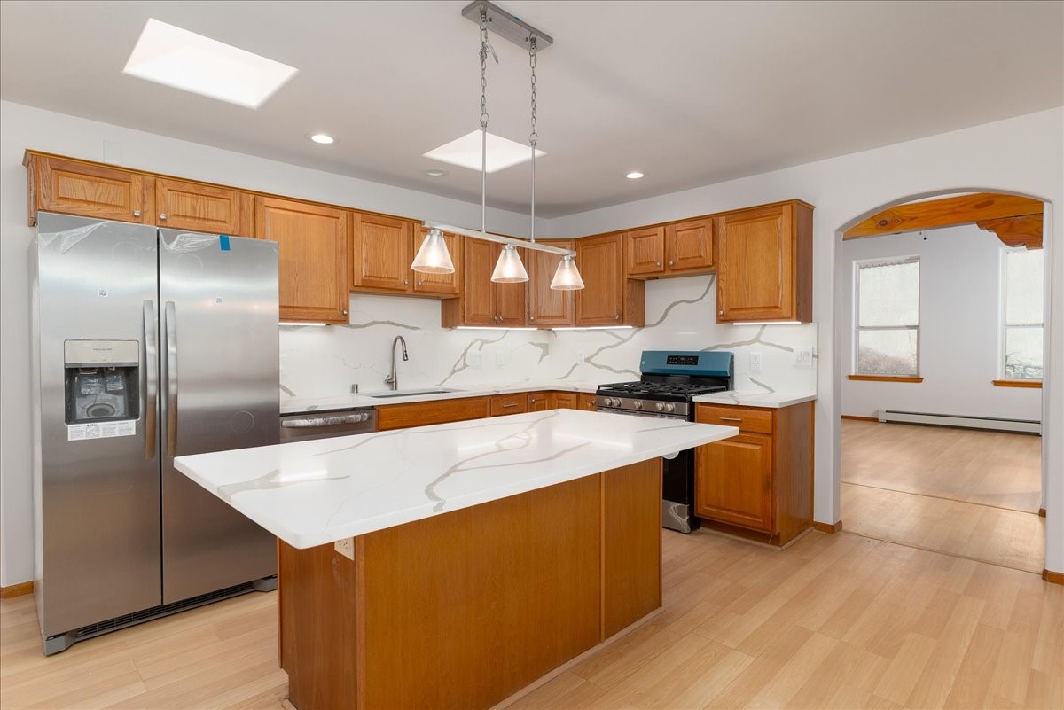 Sparkling remodel in a convenient location. The original home burned down in 2005. Built new in 2006, this home features 10 & 12 foot ceilings, Beams, 3 bedrooms plus 2 & 1/2 baths. Besides the finished single car garage, there is a fireplace, hot water baseboard heat, 3 year old roof and 1800 square feet. A remarkable and surprising home. Easy to show.