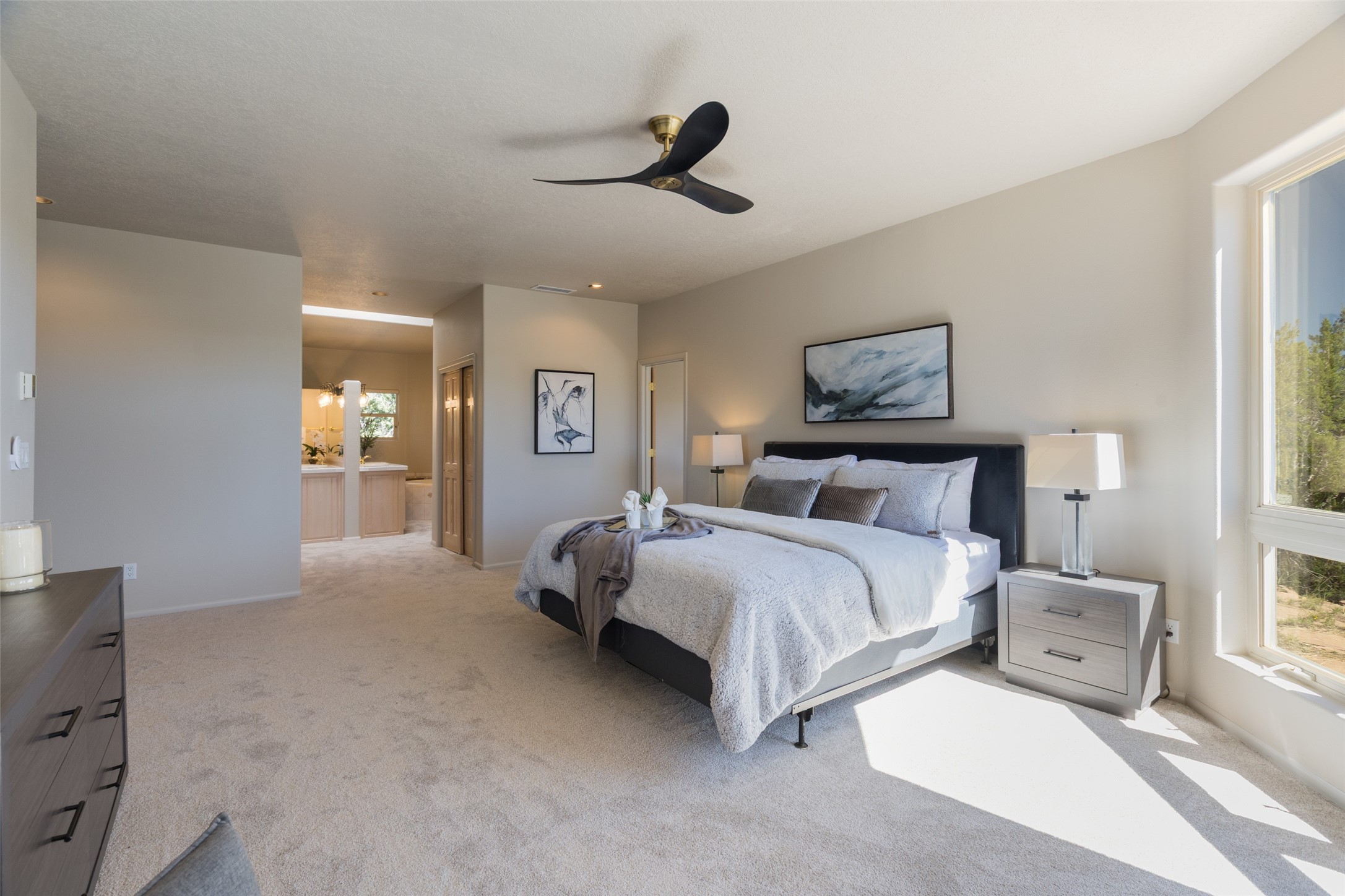 Stunning SW Contemporary home. First time on the market! Single level floor plan, light and bright with new carpet and paint and lovely fixtures....ready for the new buyer. Situated on private wooded 2.4 acres in popular Paa-Ko subdivision. Huge Living room with cathedral ceilings and high windows, formal dining, large entertainer's kitchen open to the living room with a large bar & gas range. Huge primary suite with separate sitting area. Cozy library with lots of built-in shelving. Refrigerated air. Newer roof & stucco. New Septic tank Jan 2026. 3 car garage. Minutes from the clubhouse and famous Paa-Ko golf course.
