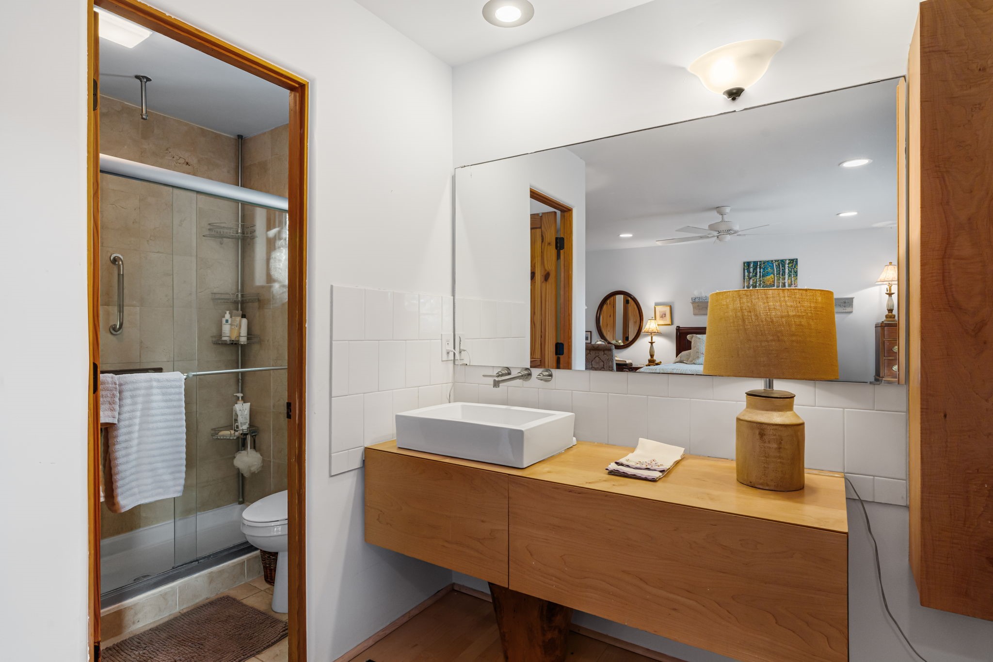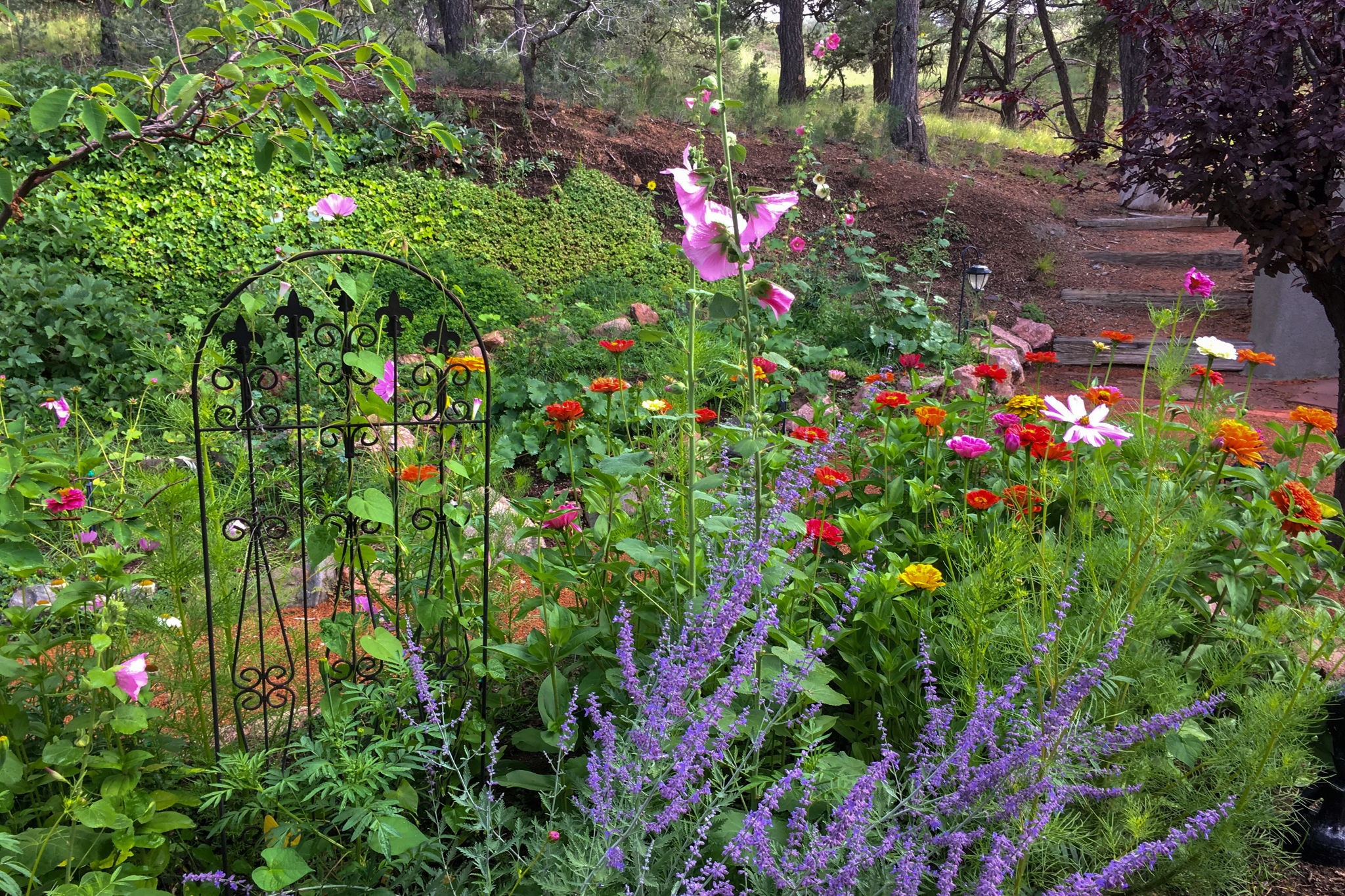 Light and Sky - where Santa Fe light meets endless sky, this enchanting 3 BR / 2BA single-level home reveals itself with effortless elegance. Set on apx 2.14 acres and offering apx 2,600 sqft of luminous living, it is a sanctuary of quiet refinement - rooms that welcome the day, frame the horizon, and inspire reflection and imagination. Warm and gracious, this home was designed to be lived in, admired, and remembered. Expansive windows and skylights draw abundant sunlight inward, illuminating blonde wood floors and interiors anchored by a sculptural stacked-stone fireplace. The living spaces embrace light and landscape with subtlety and sophistication, offering a calm serenity while effortlessly accommodating small and large gatherings. Outdoors, a generous entertaining deck extends the living space beneath vast skies. A manicured grass lawn, mature trees, and thoughtfully planted gardens create a private setting. There are abundant pinon trees, aspens, Japanese maples, and fruit trees, including apricot, pear, and apple. Also, annuals and perennials of Shasta daisies, hollyhocks, cosmos, iris, morning glories, a variety of roses and Russian sage. An ancillary structure provides for versatility - ideal as a private office, yoga or fitness studio, artist's atelier, or intimate library. An efficient HVAC system provides comfort year-round for heat and refrigerated air-conditioning. There is also an attached two-car garage. Moments from Harry's Roadhouse, El Gancho, nearby amenities and shopping with easy access to I-25, the home offers serene privacy while remaining effortlessly suited for entertaining. More than a residence, this is a home of quiet distinction, reflecting a lifestyle of beauty and serenity.