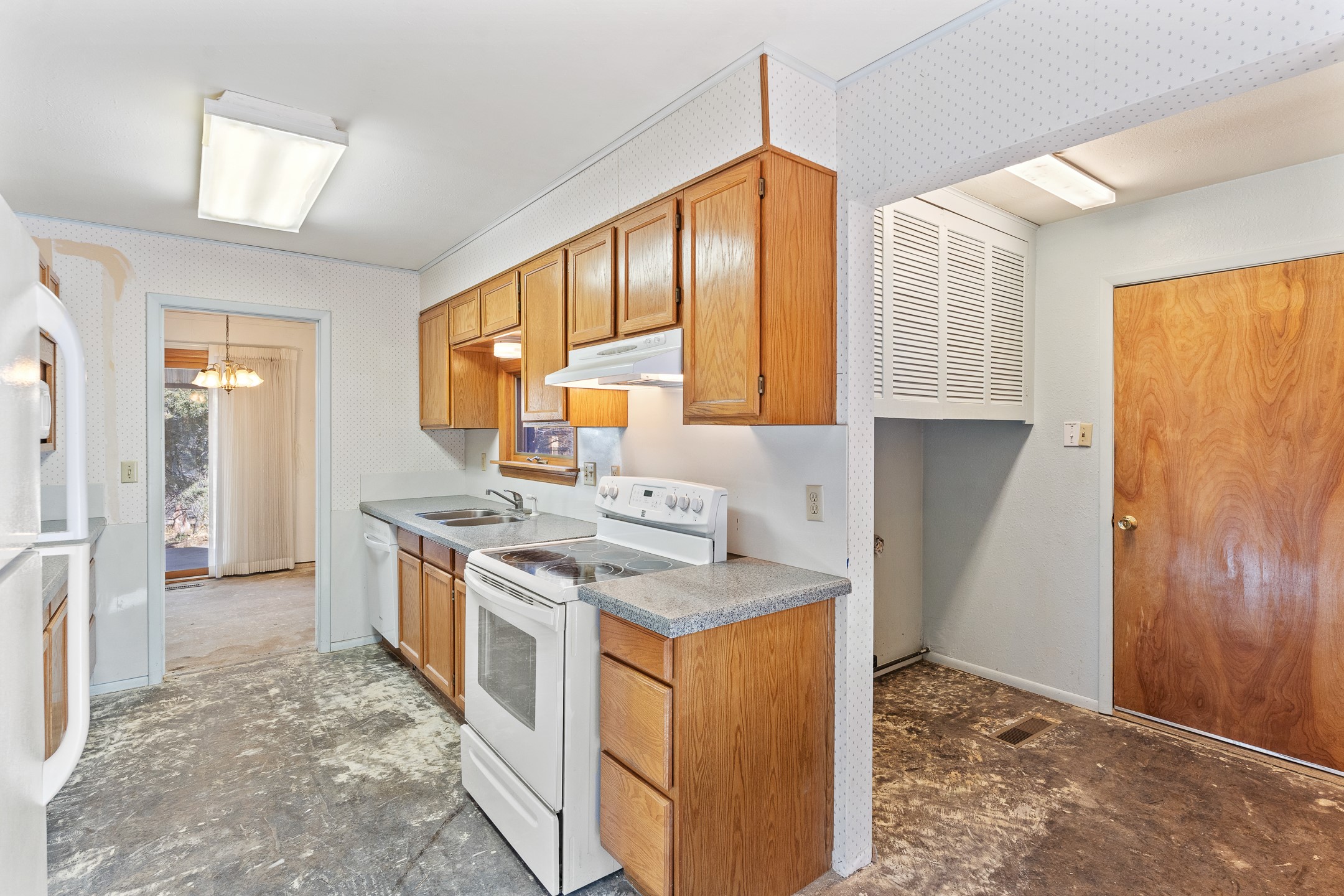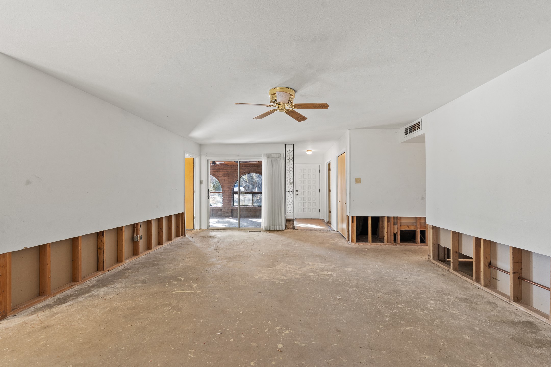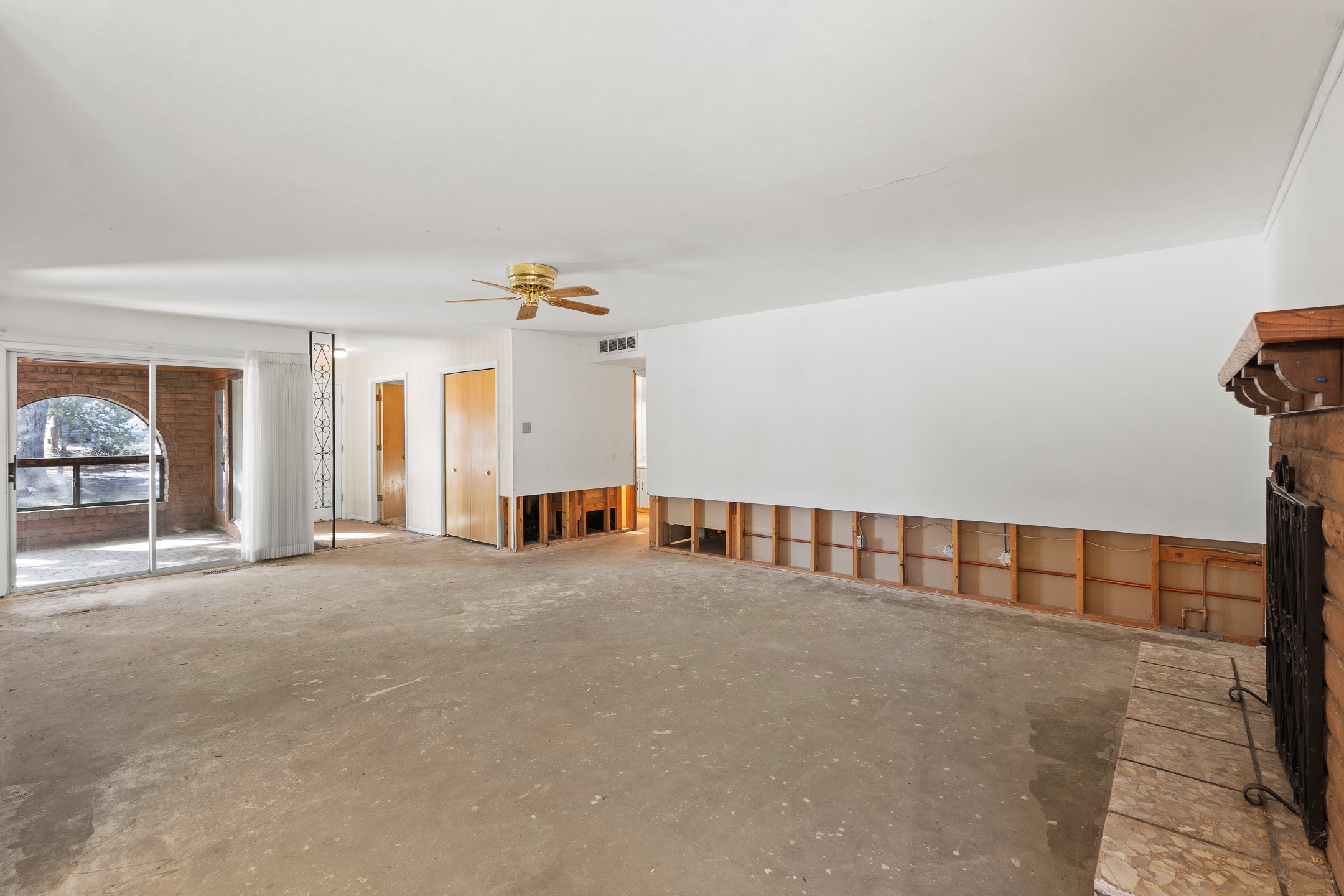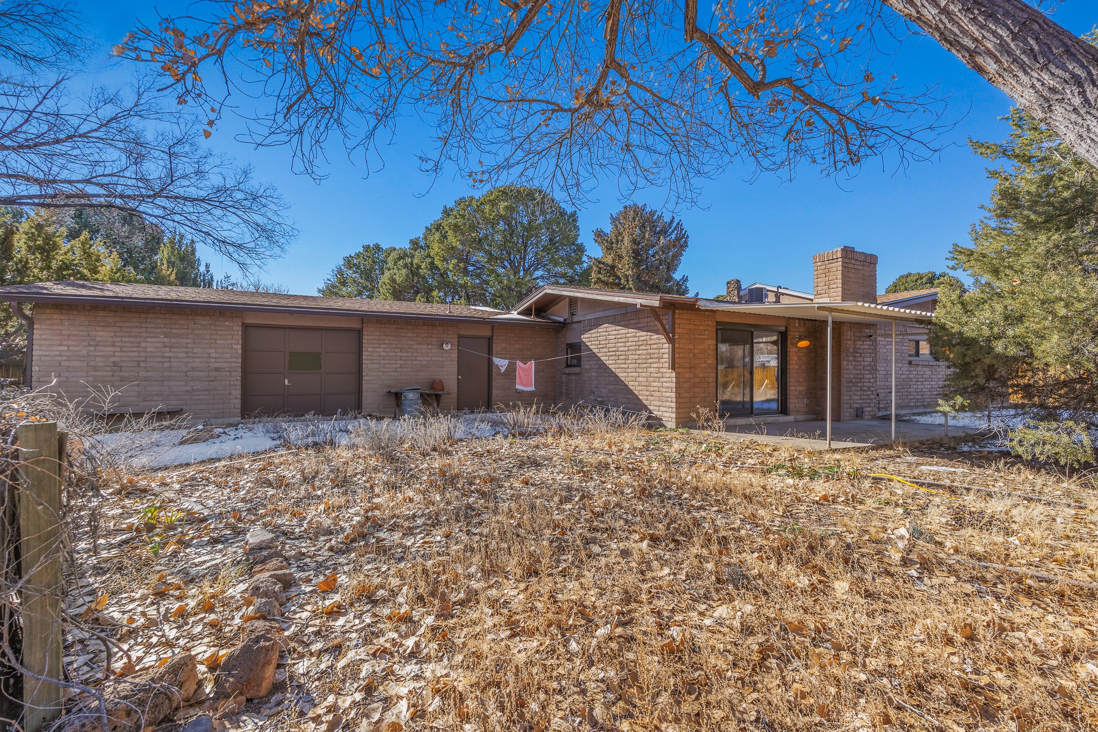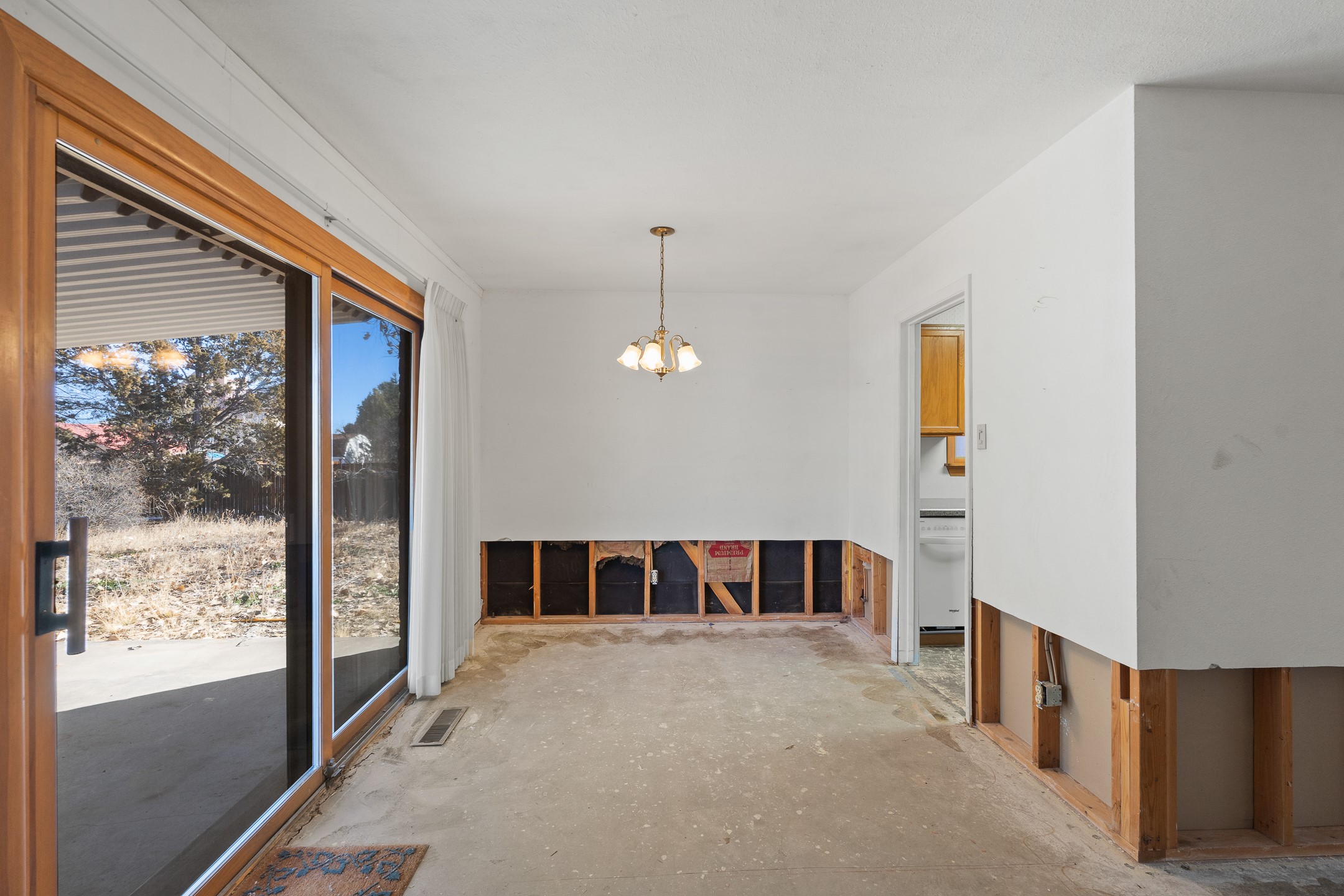 This White Rock home offers a rare opportunity to restore and reimagine a solid property with excellent potential. Following a hot water heater failure, the resulting water damage was professionally treated and remediated. Flooring has been removed and walls cut back, creating a clean slate for updates and customization.The home features three bedrooms plus a front office that could serve as a fourth bedroom or flex space. A front sunroom provides valuable space for a home office, hobby room, or relaxation area.A new roof was installed in 2024, and the house has forced-air heating and central air conditioning systems (with ductwork in good condition!). The attached two-car garage is a standout feature, offering a workshop area and a convenient drive-through garage door with access to the backyard.Set back from the street on a 0.41+ acre lot, the property enjoys privacy from mature trees. The fully fenced backyard and covered patio provide a great foundation for outdoor living and entertaining during those beautiful Northern New Mexico summer days.Offers will be reviewed Tuesday, February 10. Schedule your showing today and don't miss this opportunity to bring new life to a White Rock home with incredible potential.