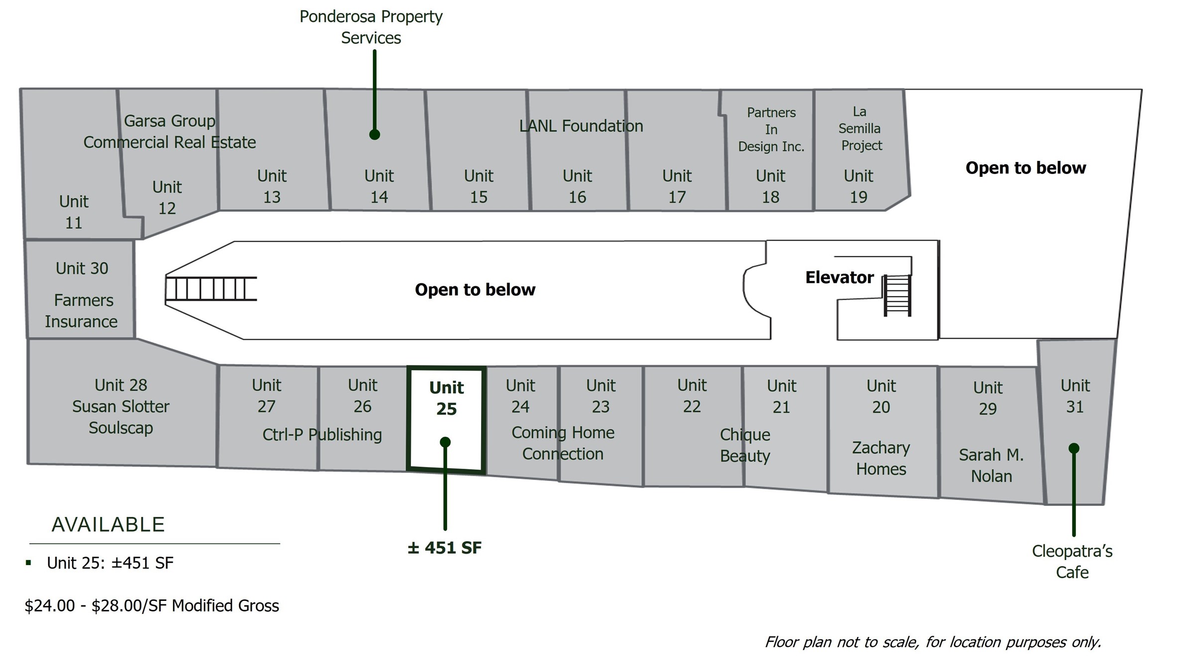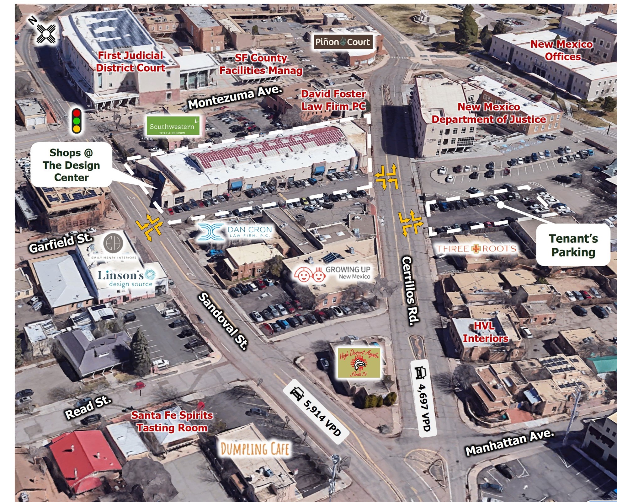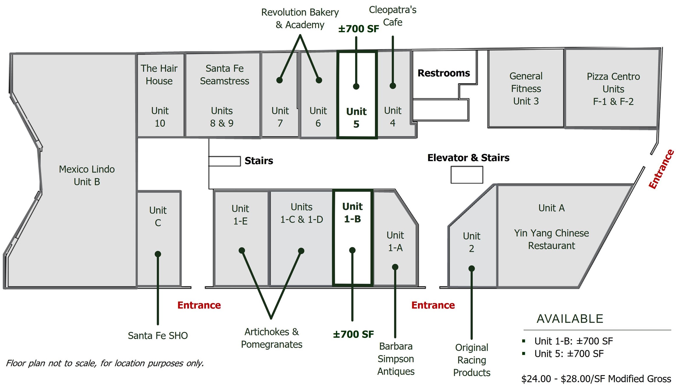 AVAILABLE: Lower Level (Retail): Unit 1-B: 700 SF, Unit 5: 700 SF (restaurant),Upper Level (office/studio): Unit 25: 451 SF | ZONING: BCD, Business Capital District | HIGHLIGHTS: Open and airy mall design, Just steps away from the District Court House, Close to the Railyard District, Downtown Santa Fe and state buildings, Co tenants include: Mexico Lindo, Pizza Centro, Yin Yang Restaurant, Revolution Bakery, Cleopatra's Cafe, Antique Shops, Professional Offices