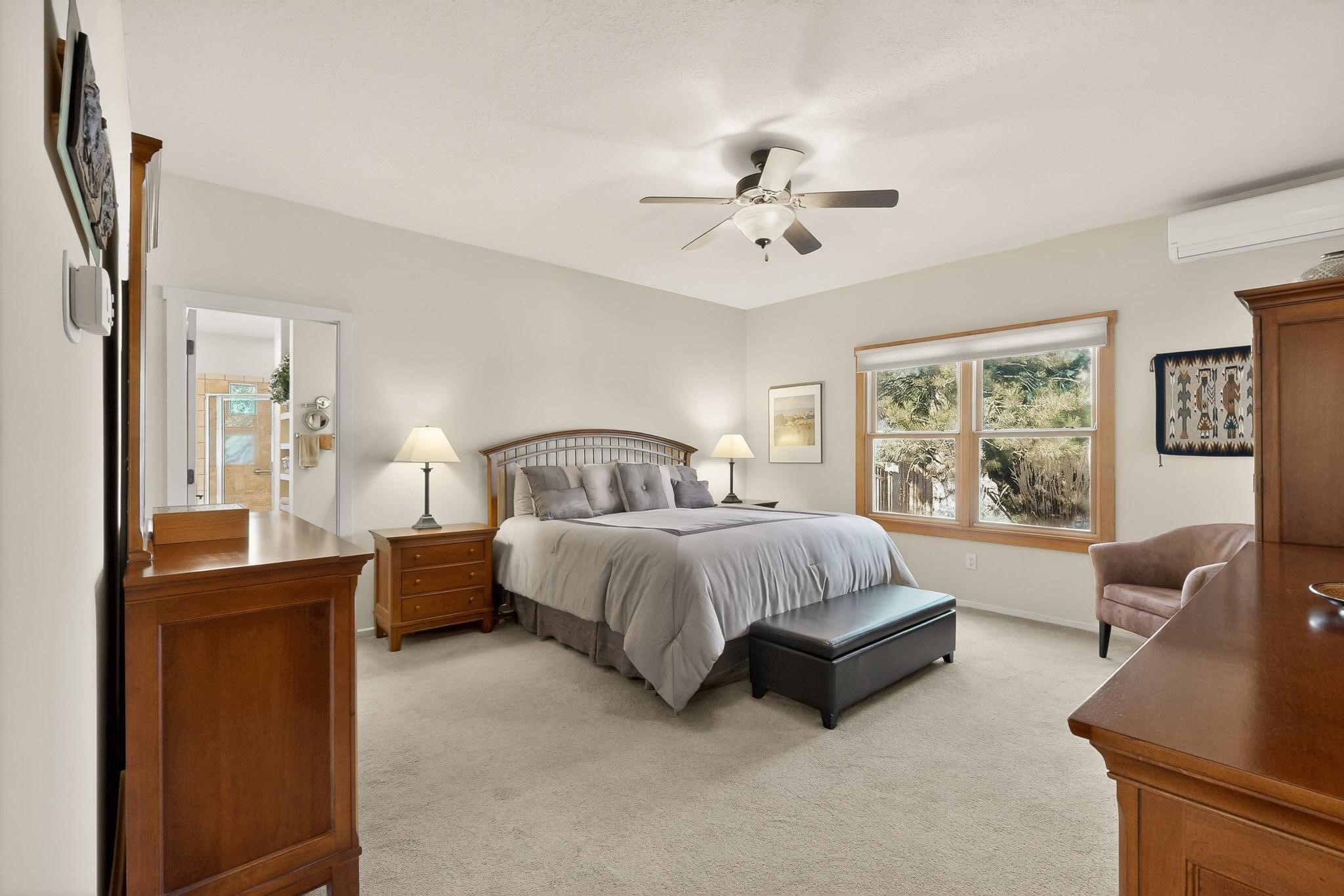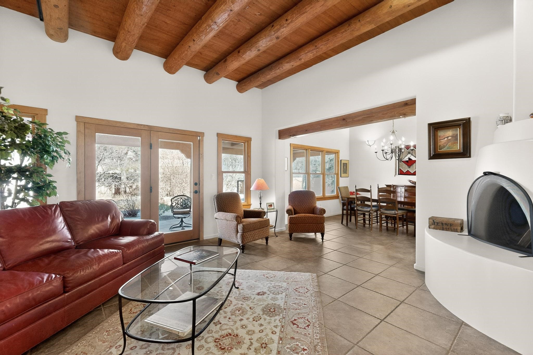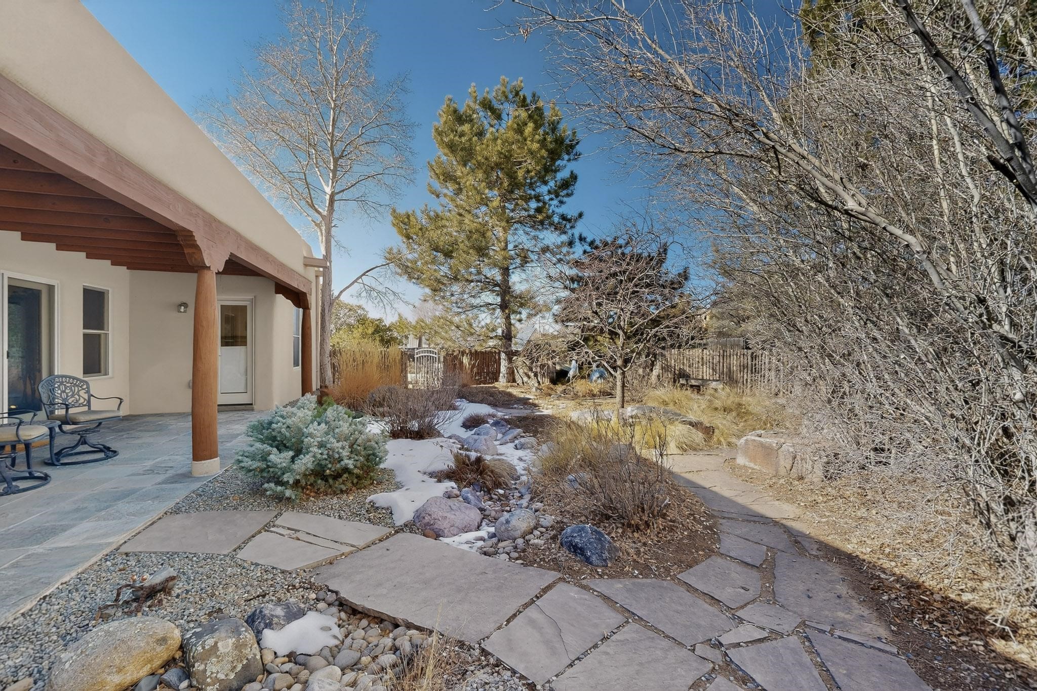 This 2003 Chapman built in City home has so many features to recommend! It is a balanced and lovely home set on 1.6 acres with open walkways and terracing on both south and north facades with stewarded irrigation and landscaping surrounds. City water as well as a cistern support gardening and a meaningful, open landscape. The solar footprint provides sustainable energy on a daily basis. This is an environmentally-friendly property that keeps utility bills to a minimum. The conforming style inside is a three bedroom, two bathroom home encompassing 2,508 sq feet. There are multiple closets throughout for storage needs. With an additional dining room off the Living Room, a large TV room and fireplace enhanced entertaining zone adjacent to the kitchen, a smaller breakfast/ lunch nook that opens to gardens and a fountain outside. The garage space at the east end addresses 2 car parking and has an additional work room for handyman tools, storage and craft considerations! Just wait until you see this abundance and the privacy it embraces, it is truly special. The exterior acreage is fenced in portions, wonderful for dog lovers, and the access to the Sol Y Lomas hiking roadways/trails is a big bonus too! The visible solar presence includes a 14 panel solar array to the west and eight standing vertical south facing solar panels attached to north fence which collectively are owned and service the house. Separate lists of pertinent house appliances as well as further details on the solar footprint can be reviewed in the associated docs of this Listing. The Listing price for this residence is $1 million which likely will celebrate affordability and possibly avoid today's High End Excise Tax!