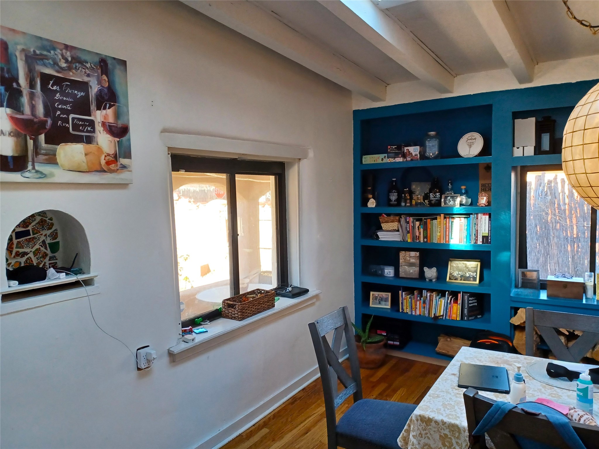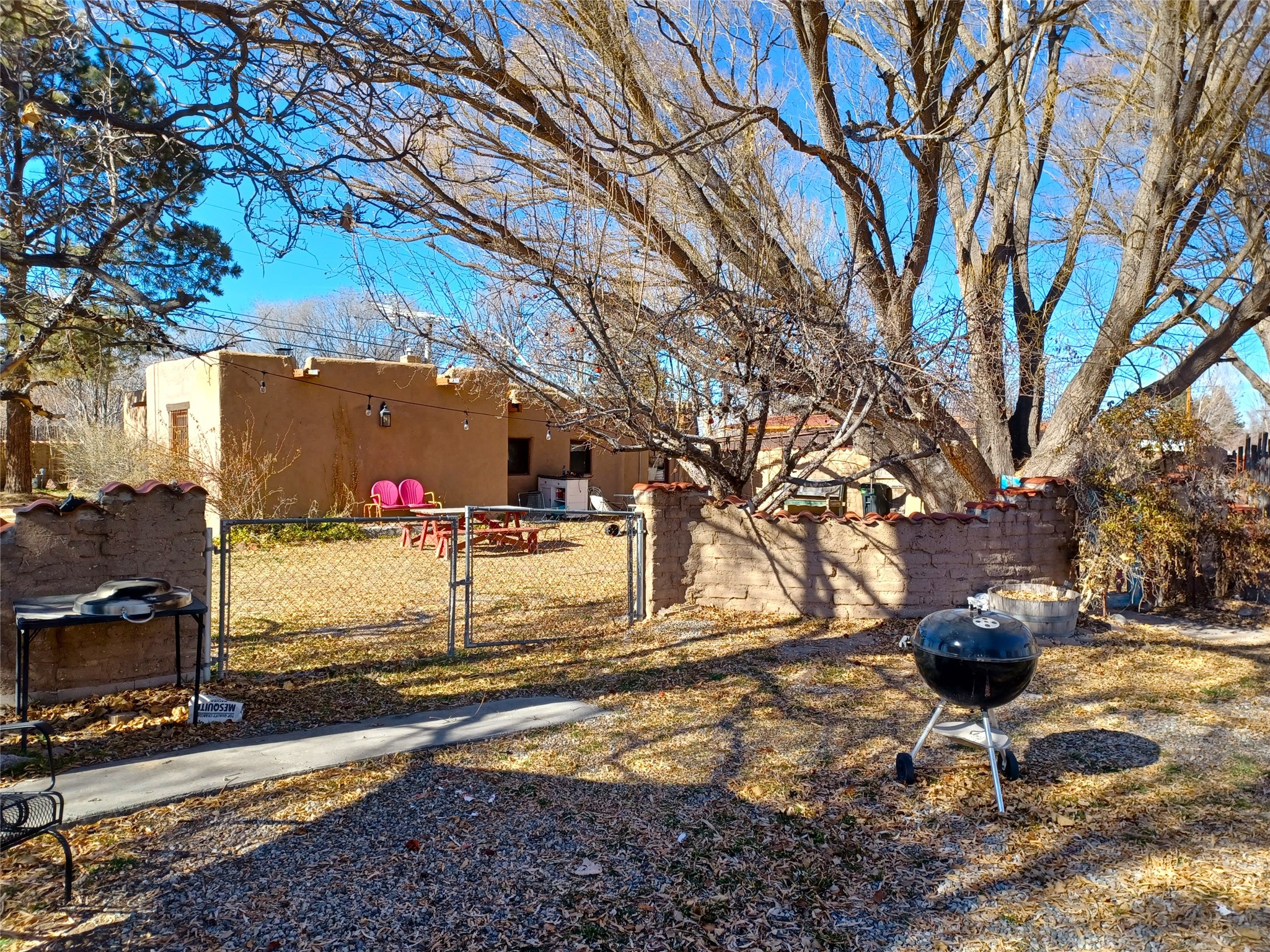 Welcome to "Casa de Guadalupe," a charming vintage adobe sanctuary nestled on half an acre in the verdant landscape of San Pedro in Espaola, NM. This unique 1,984-square-foot home offers a perfect blend of old-world character and modern convenience, featuring two bedrooms, a full bath, and an additional studio ideal for creative pursuits or a home-based business.The interior boasts a vibrant aesthetic feelwith colorful finishes that complement original 1920s oak floors, Mexican tile, exposed beams, and intricate nichos. Outside, the property is graced by a majestic globe willow, mature landscaping, fertile garden spaces, and inviting courtyards. Privacy is ensured by traditional adobe walls and latilla fencing, all secured behind a gated entry.The generous lot also includes a rustic workshop/barn and an additional storage building, catering to artists, writers, gardeners, and boutique farmers. Residents will enjoy scenic commutes to Santa Fe, Los Alamos, and Ojo Caliente Mineral Springs Resort & Spa, with the world-renowned Buffalo Thunder Casino and the Black Mesa Golf Club located just minutes away. Experience the charm and potential of this lovingly updated home in person.Schedule a showing today!