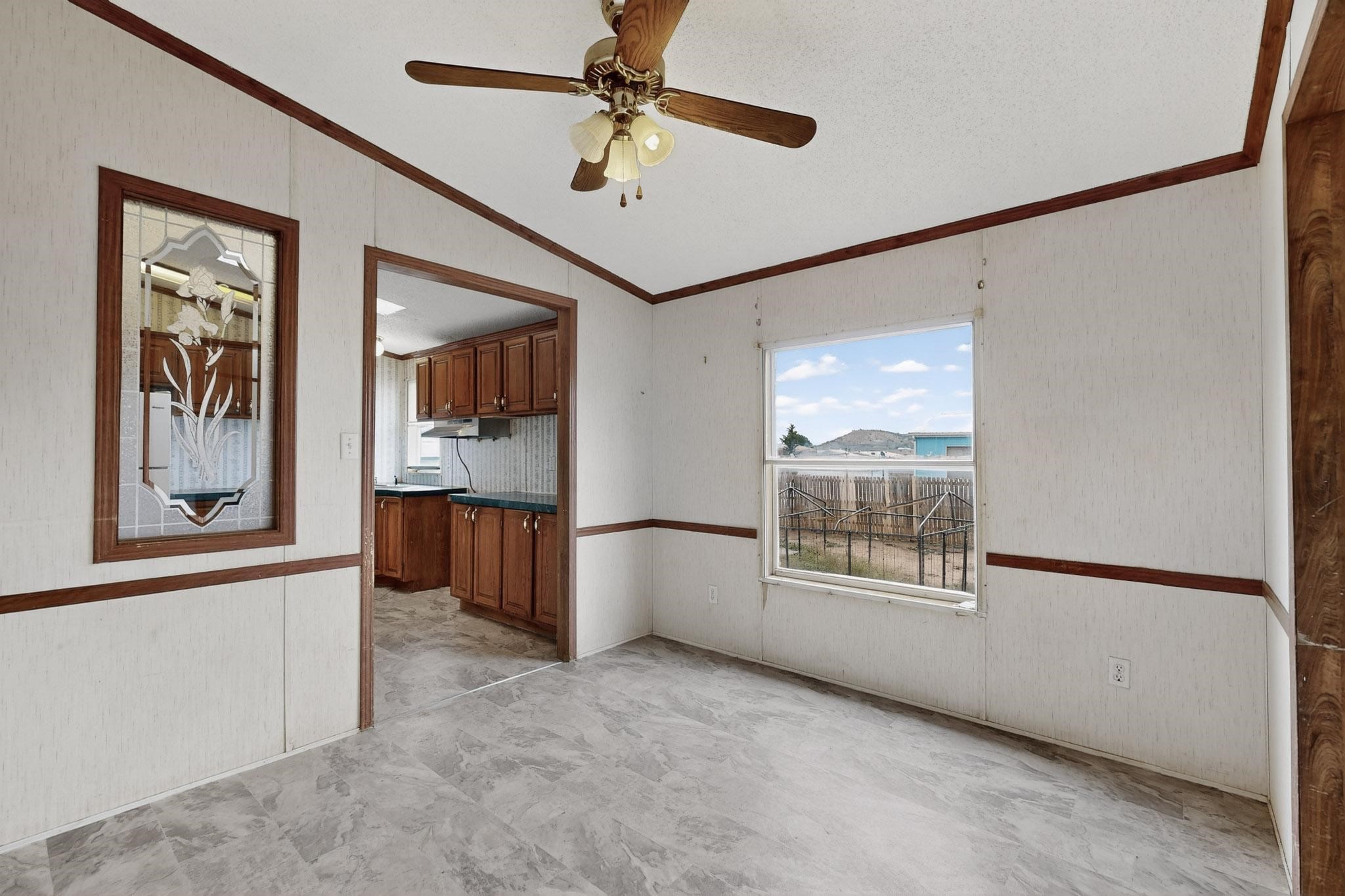 Well-maintained mobile home on a spacious lot in Las Vegas, NM, offering beautiful views of Hermit's Peak. The home has been freshly painted and features new carpet, giving it a clean and move-in-ready feel. Inside, you'll find a comfortable layout with plenty of natural light and potential to personalize. The generous lot provides room for outdoor living, gardening, or future improvements. Conveniently located near Storrie Lake State Park, you'll enjoy quick access to fishing, boating, and hiking. A great opportunity for a full-time residence, rental, or weekend getaway in northern New Mexico.