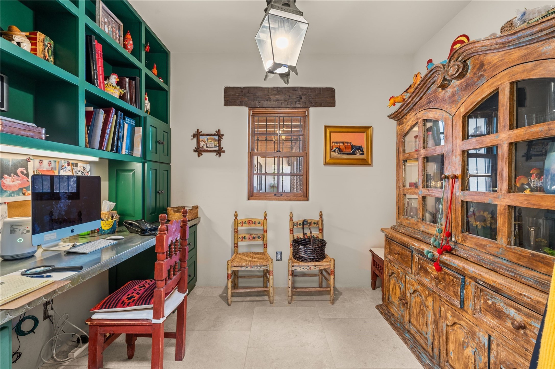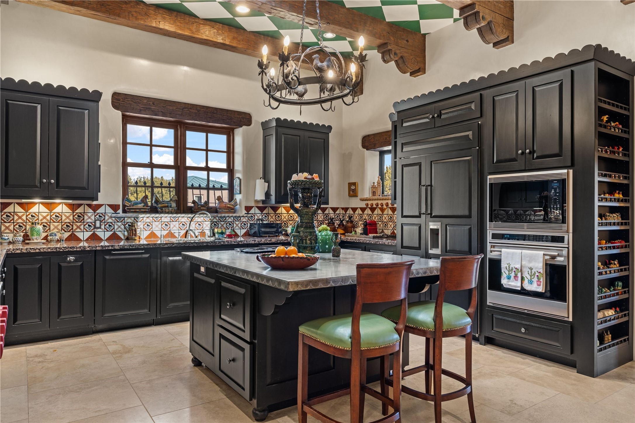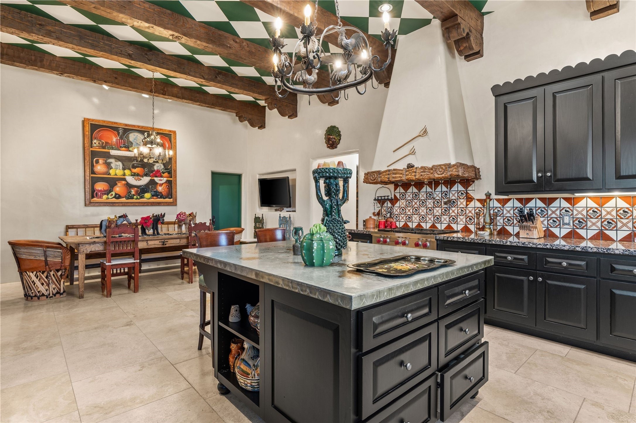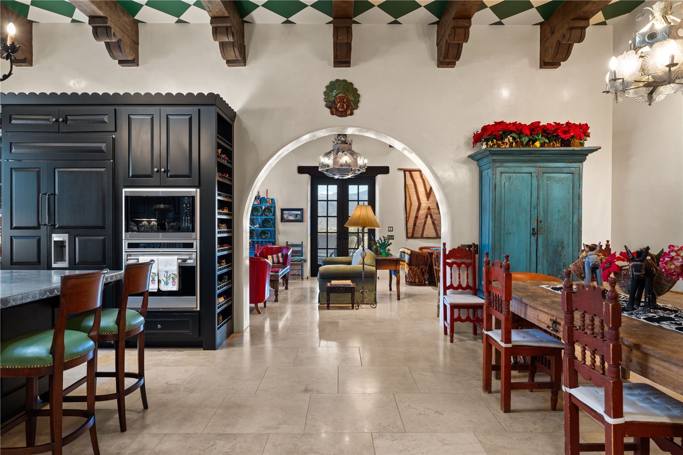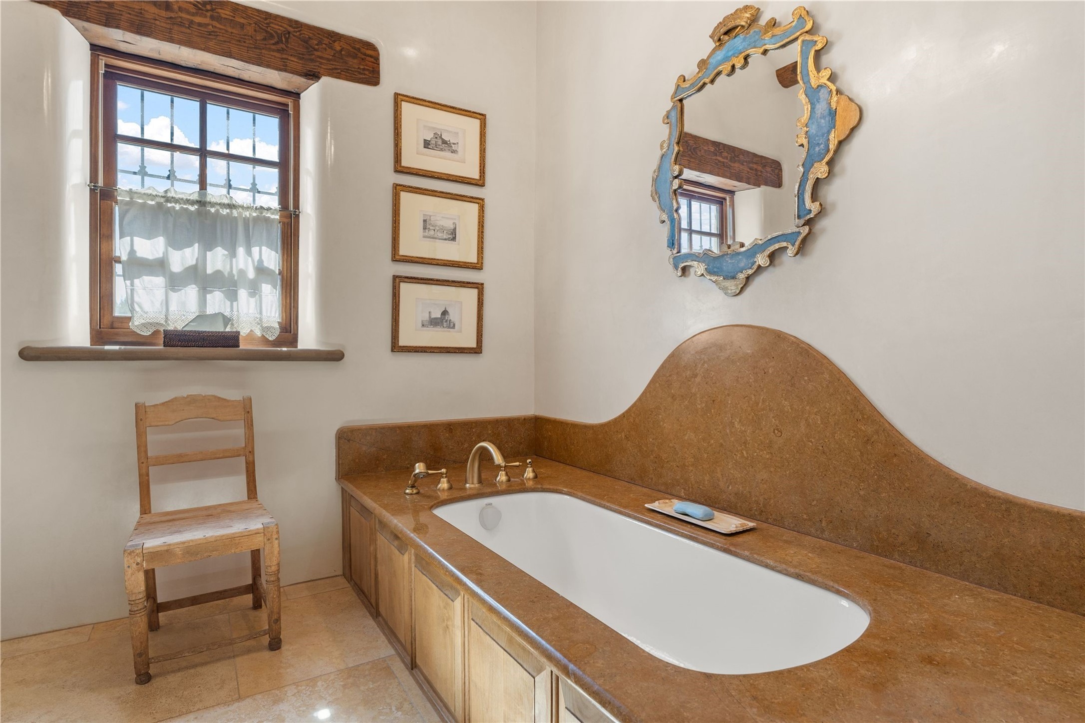 Reminiscent of a colonial hacienda, this impressive estate offers privacy, views, an adobe walled-in main residence and casita, plus a studio/guest house. Beautifully sited on nearly 10 acres (comprised of 2 separately deeded lots), and featuring the highest quality construction (double adobe in the main house). The Main house consists of 2 bedroom suites plus 2 half baths; the Casita consists of 2 bedrooms and 2 baths, and the Studio/Hogan has 1 bedroom,1 bath. There is an expansive portal and a roof top deck, 7 Fireplaces, private well and 12' and 15' Ceilings in public areas. This property is one of Santa Fe's finest.