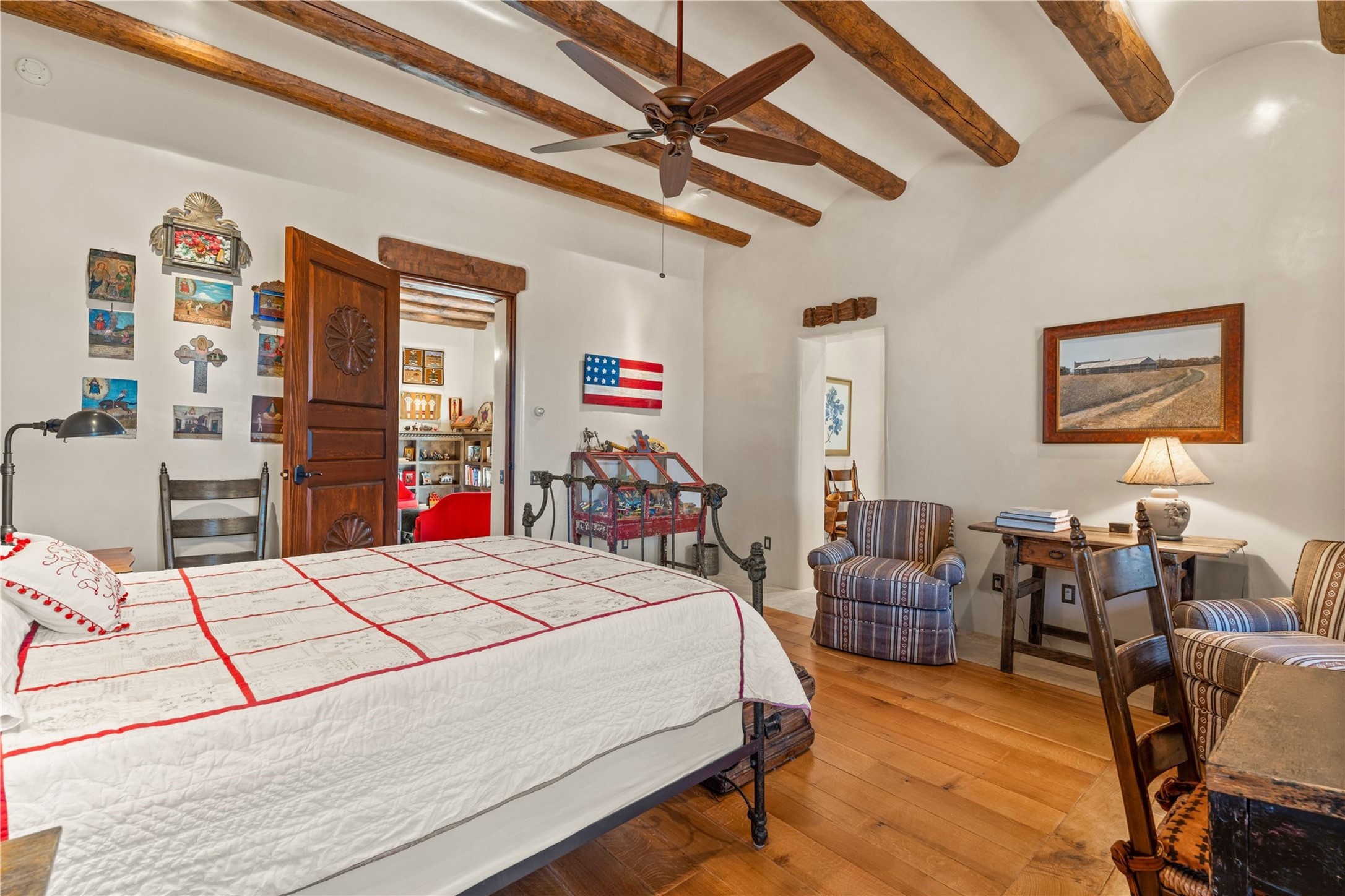 - Interior FeaturesBeamed Ceilings, No Interior Steps