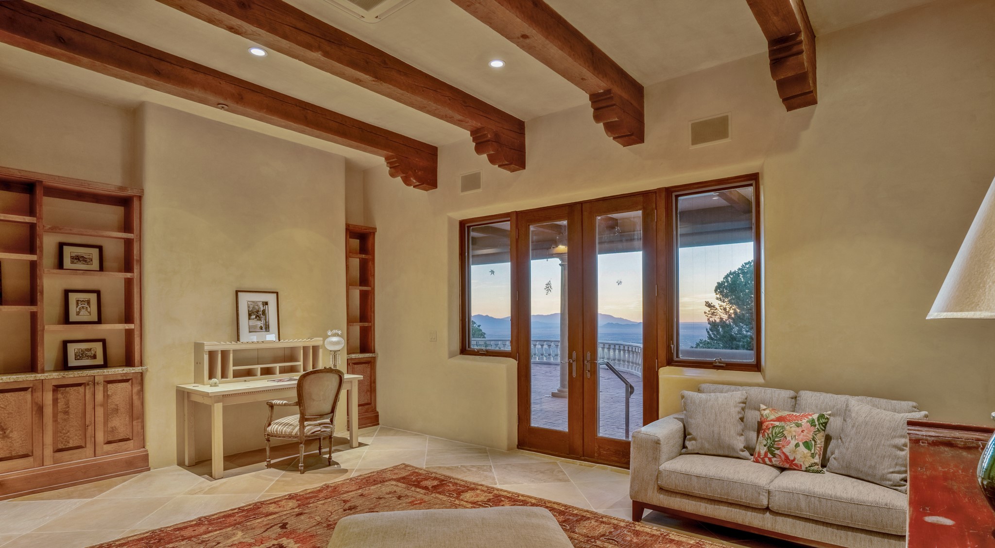 Perched on a ridgetop with rare magnificent views of mountains, sunsets and city lights is an artistic masterpiece. From the amazing vistas at every angle to the solid grounding of earth, this villa is embraced by nature and steeped in peace and privacy while also providing all you need for grand entertaining. Opening to the 3300 sf veranda and sharing in the incredible views are the gourmet kitchen, living/dining room, office/media room and the primary bedroom suite. Rounding out this truly unique and special home is a library and two additional bedrooms with ensuite baths.